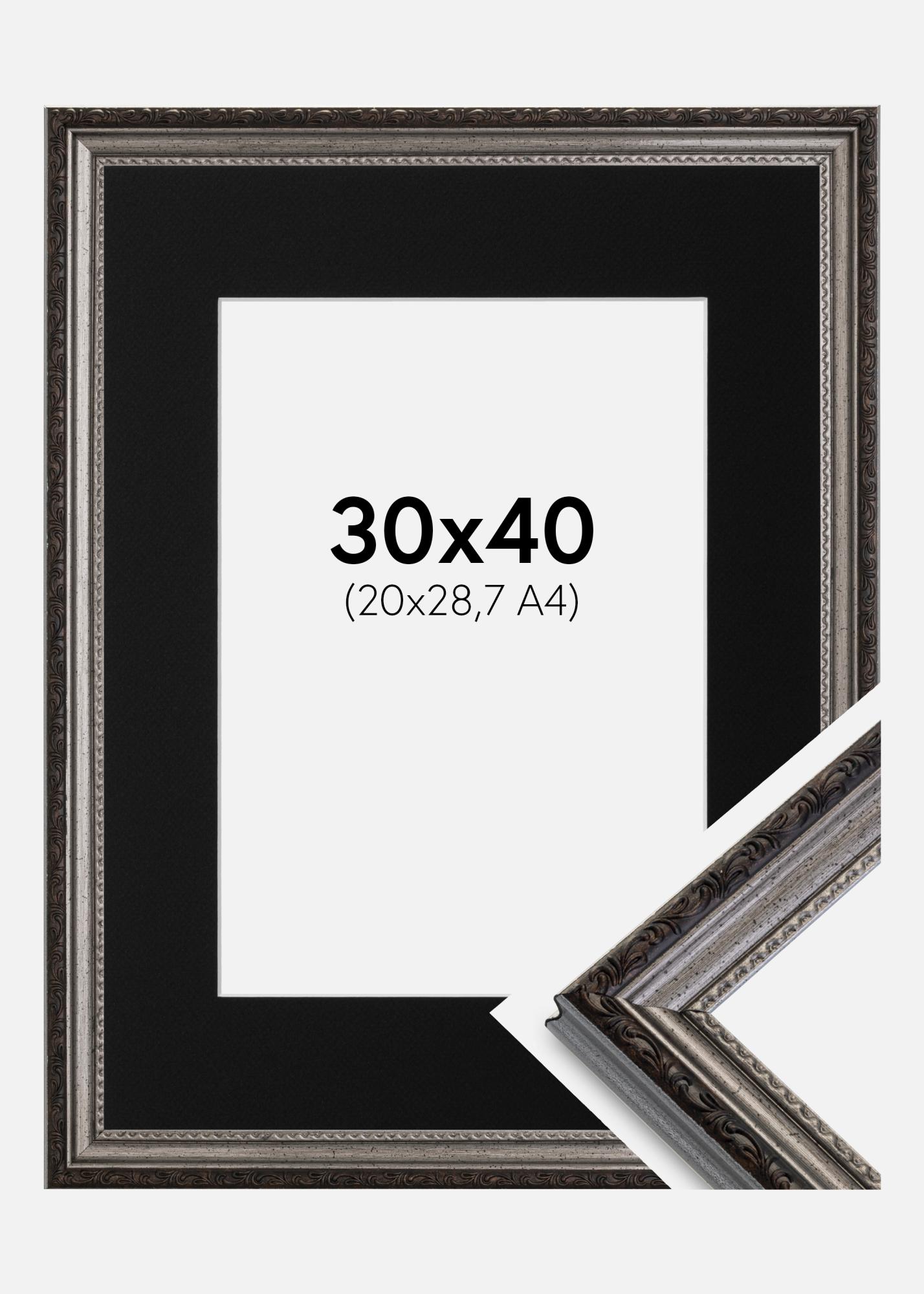 Rahmen Abisko Silber 30x40 cm - Passepartout Schwarz 21x29,7 cm (A4)