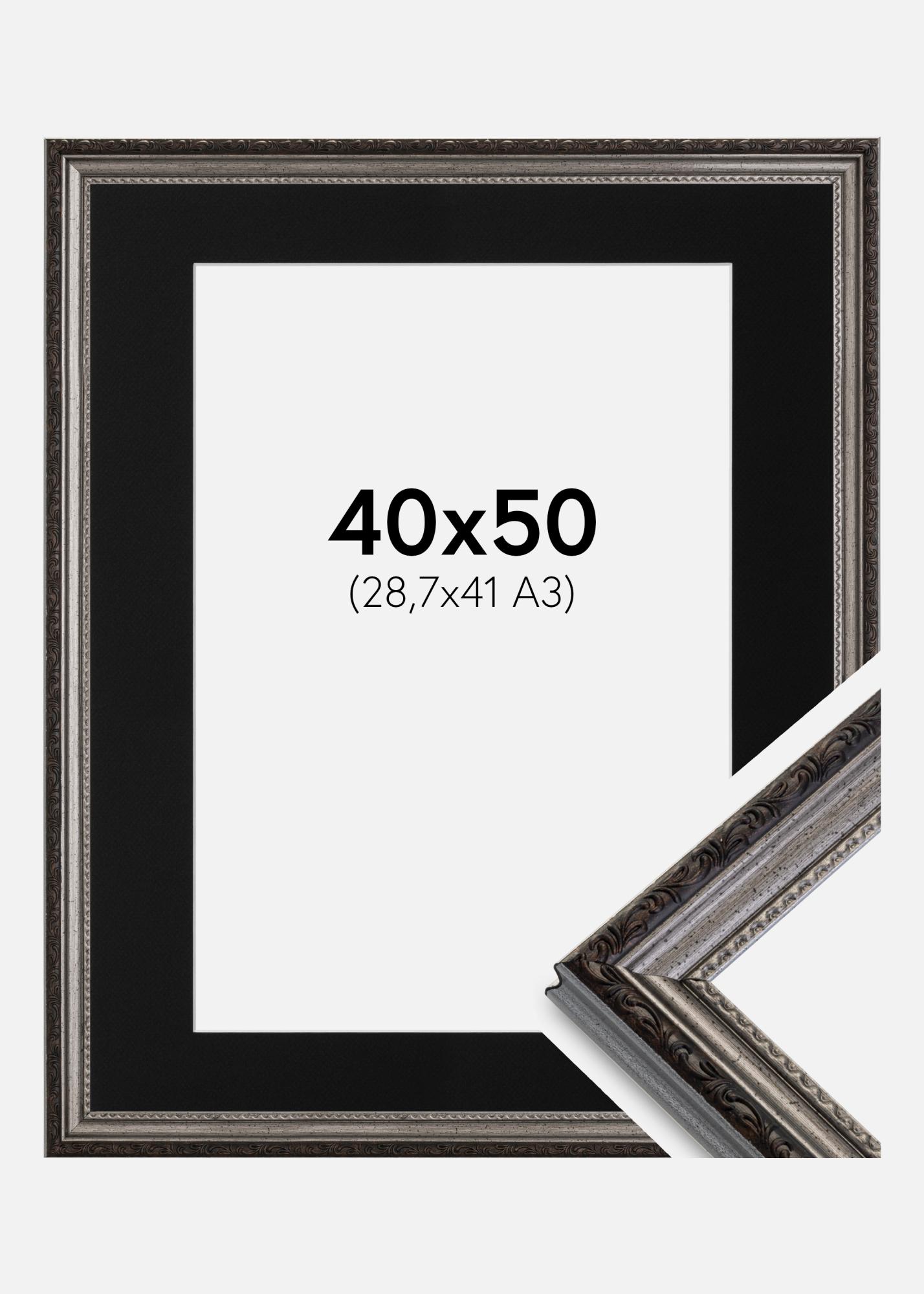 Rahmen Abisko Silber 40x50 cm - Passepartout Schwarz 29,7x42 cm (A3)