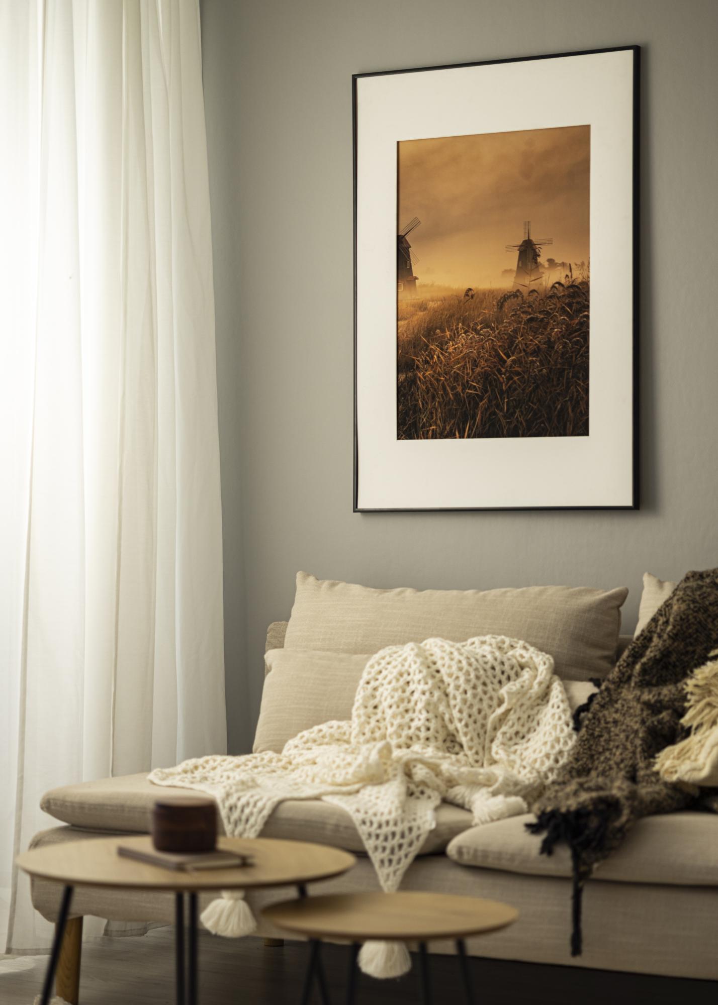 Das Acrylglas im Rahmen hat eine Schutzfolie auf beiden Seiten, die vor der Verwendung einfach entfernt wird und sicherstellt, dass Ihr Motiv frei von Kratzern oder Staub präsentiert wird. Mit einem Profil von nur 9 mm wird der Rahmen zu einem diskreten, aber dennoch präsenten Detail an Ihrer Wand.