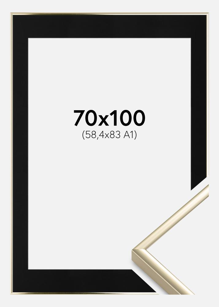 Rahmen Aluminium Gold glänzend 70x100 cm - Passepartout Schwarz 59,4x84 cm