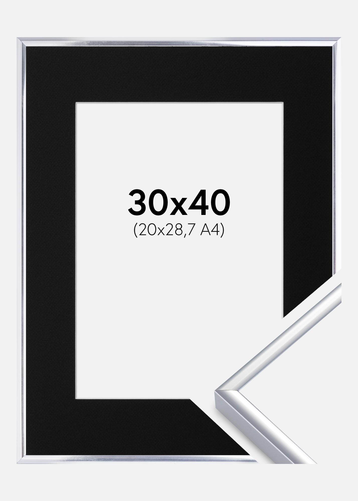 Rahmen Aluminium Silber glänzend 30x40 cm - Passepartout Schwarz 21x29,7 cm