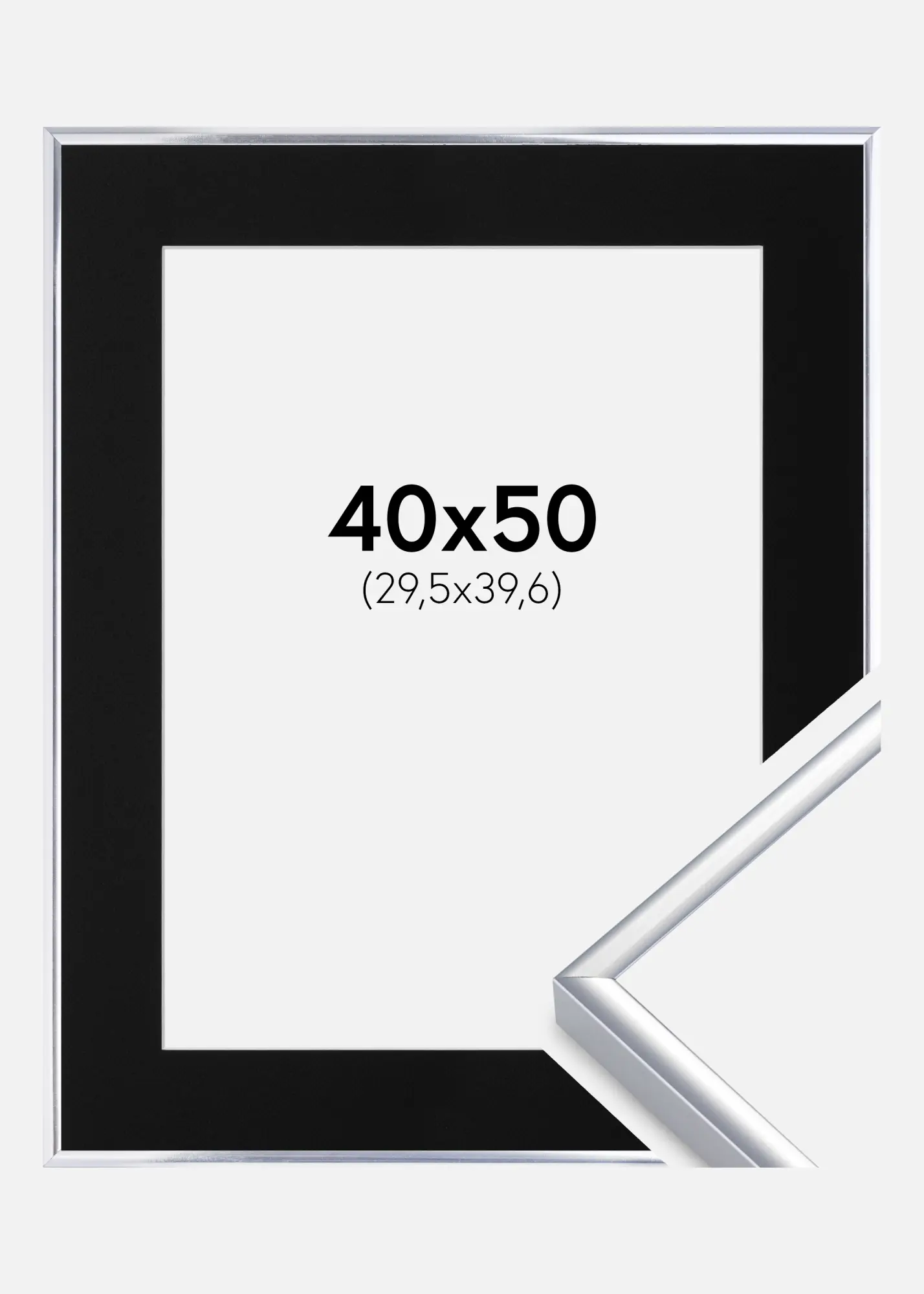 Rahmen Aluminium Silber glänzend 40x50 cm - Passepartout Schwarz 12x16 inches