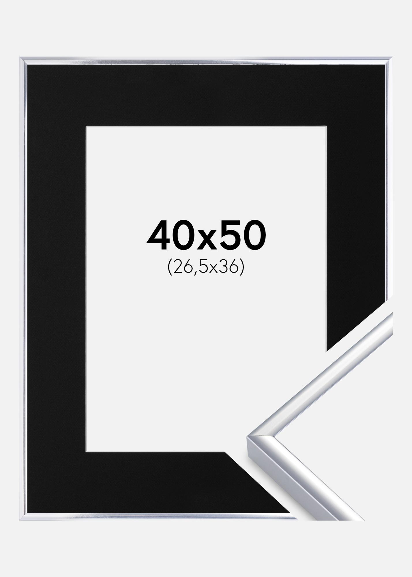 Rahmen Aluminium Silber glänzend 40x50 cm - Passepartout Schwarz 27,5x37 cm