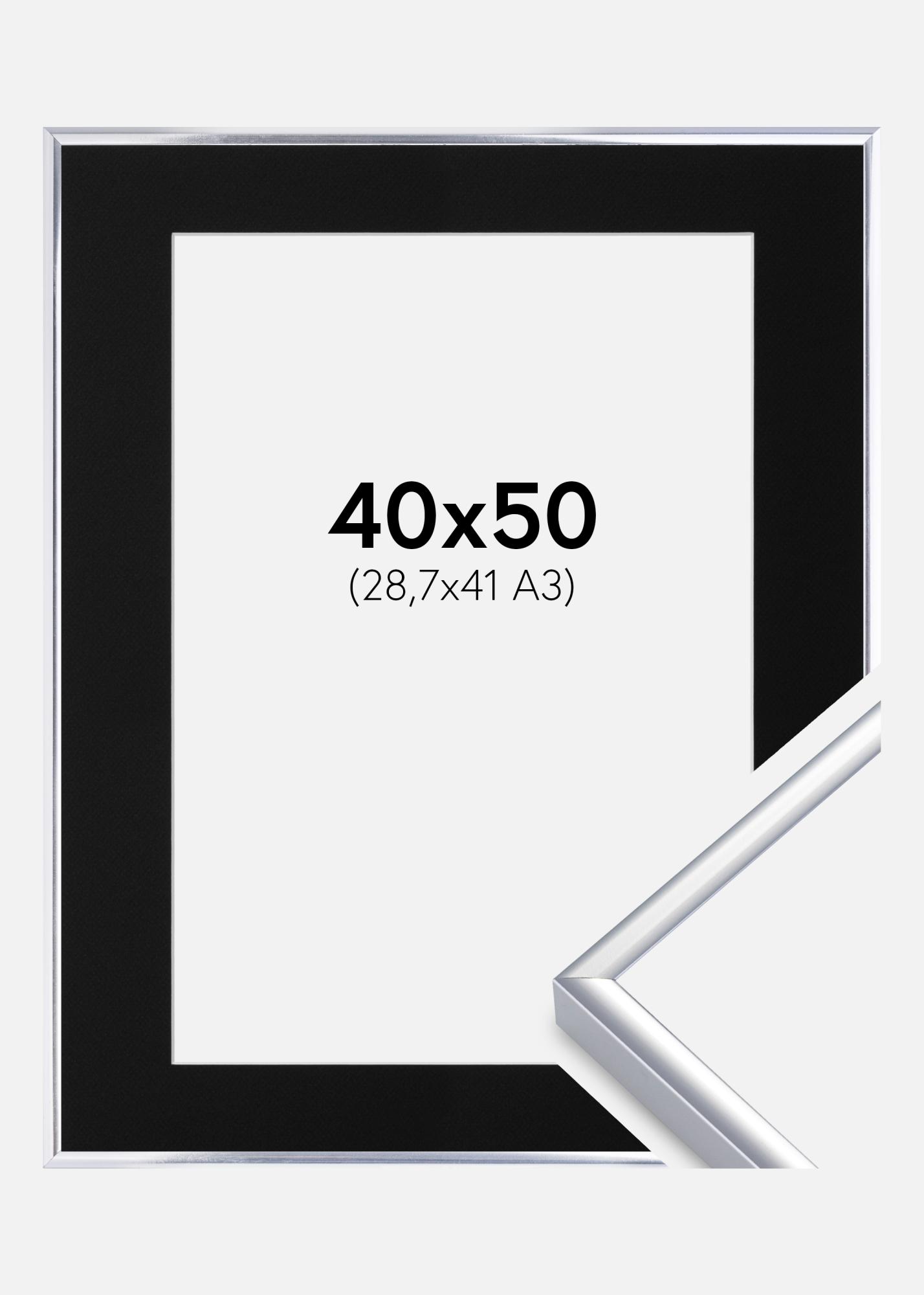 Rahmen Aluminium Silber glänzend 40x50 cm - Passepartout Schwarz 29,7x42 cm