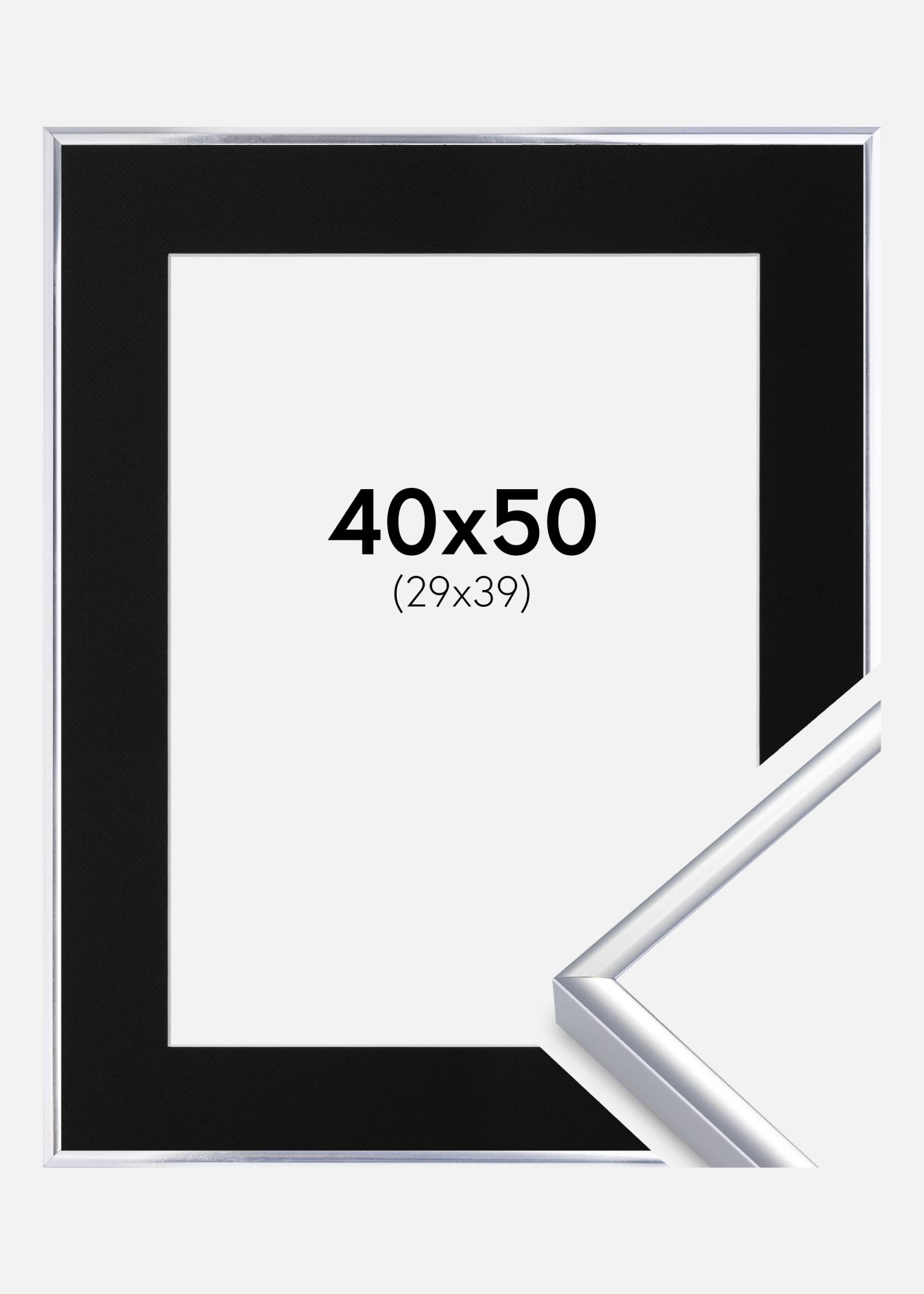 Rahmen Aluminium Silber glänzend 40x50 cm - Passepartout Schwarz 30x40 cm