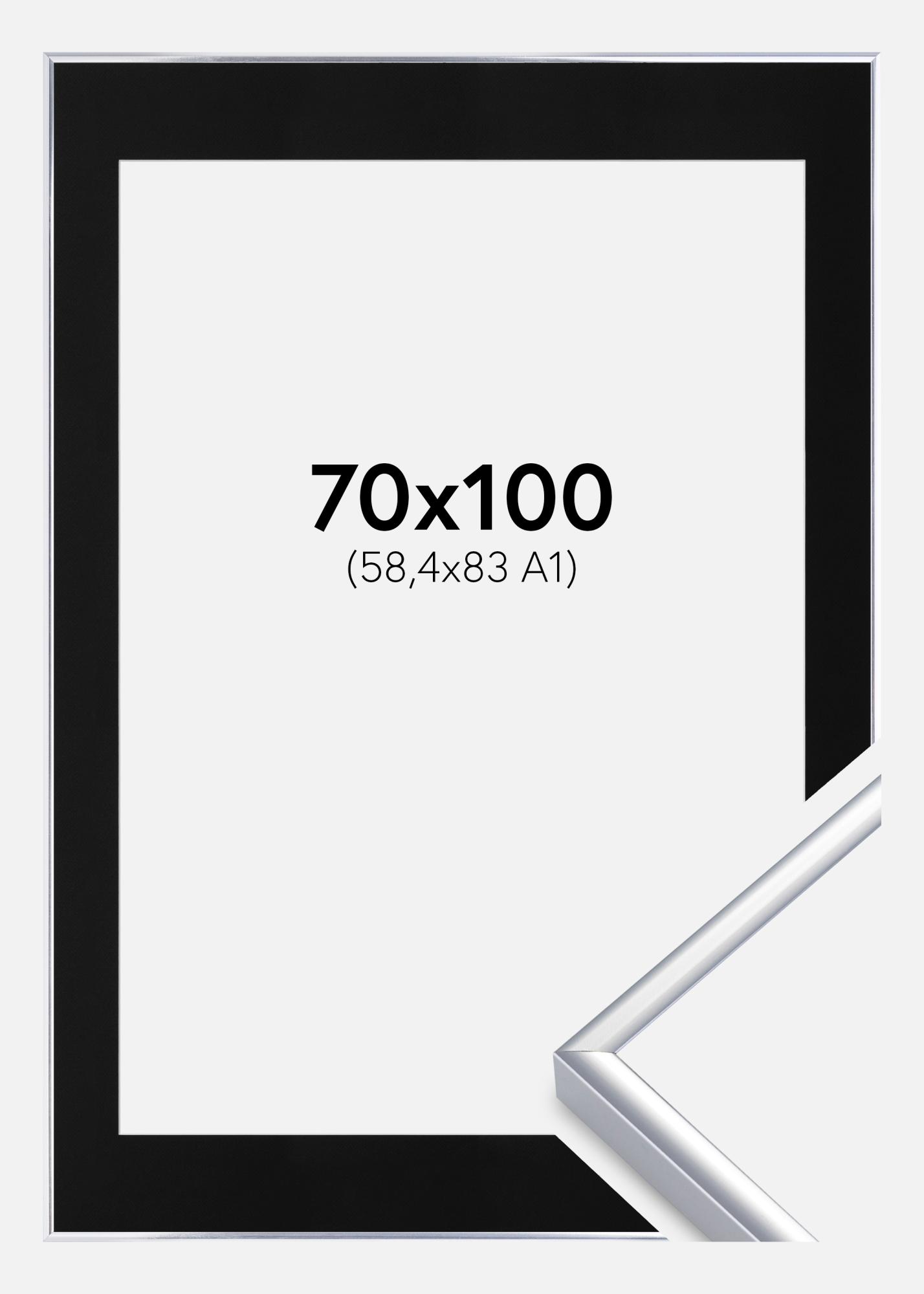 Rahmen Aluminium Silber glänzend 70x100 cm - Passepartout Schwarz 59,4x84 cm