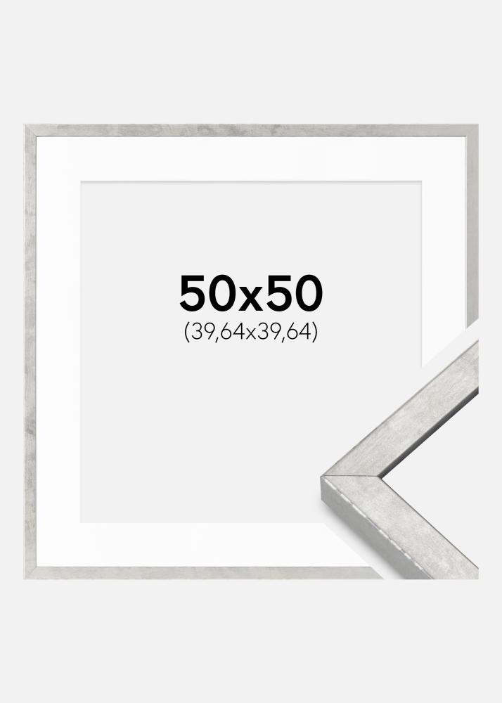 Rahmen Ares Silber 50x50 cm - Passepartout Weiß 16x16 inches