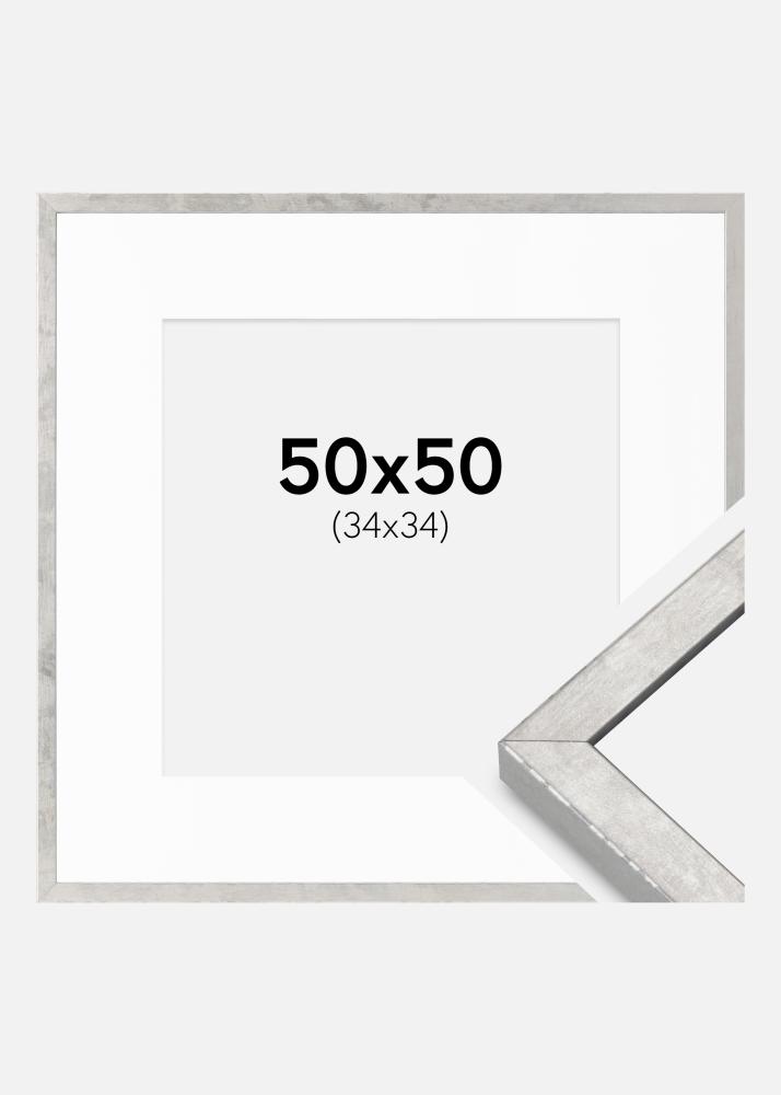 Rahmen Ares Silber 50x50 cm - Passepartout Weiß 35x35 cm