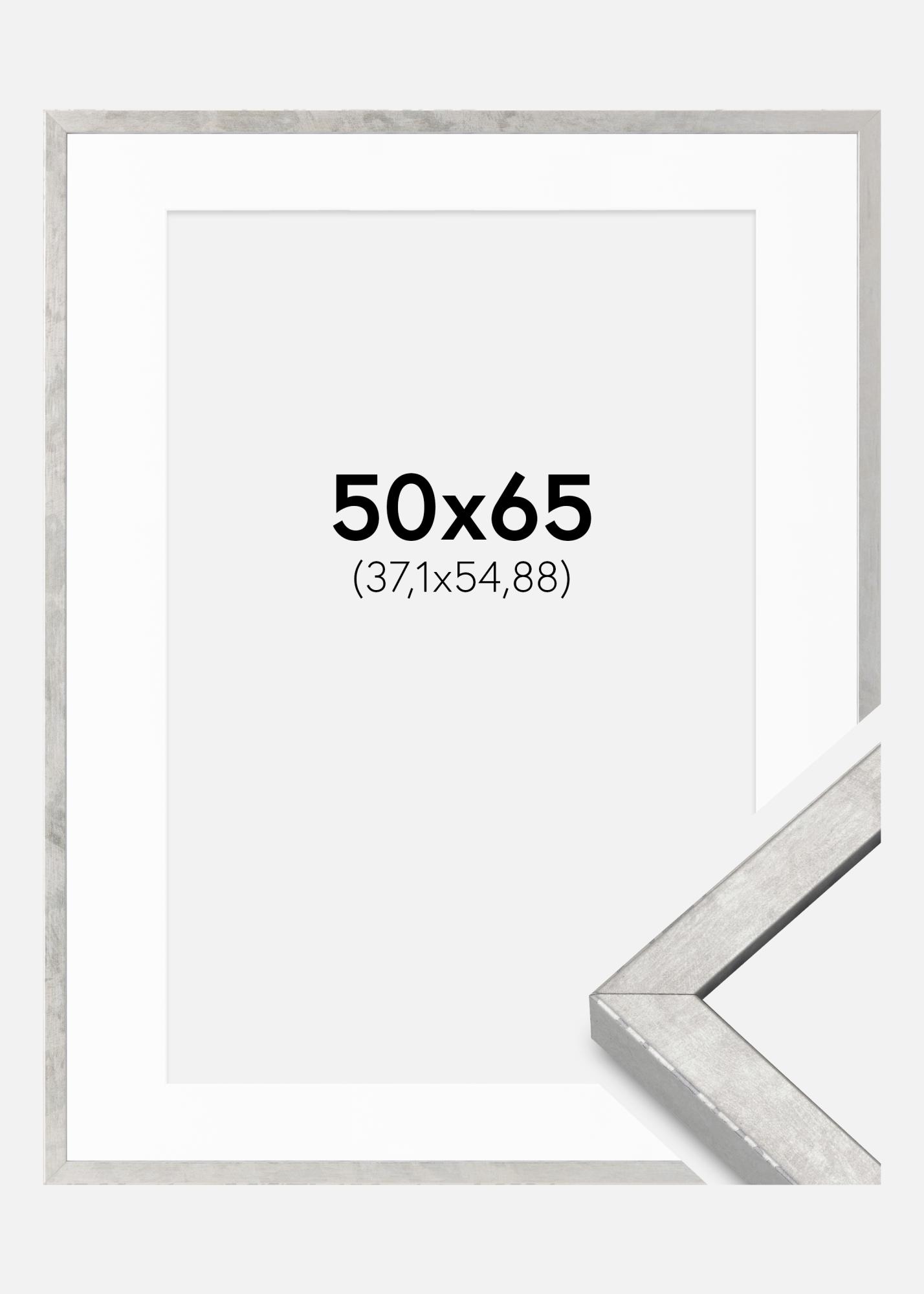 Rahmen Ares Silber 50x65 cm - Passepartout Weiß 15x22 inches