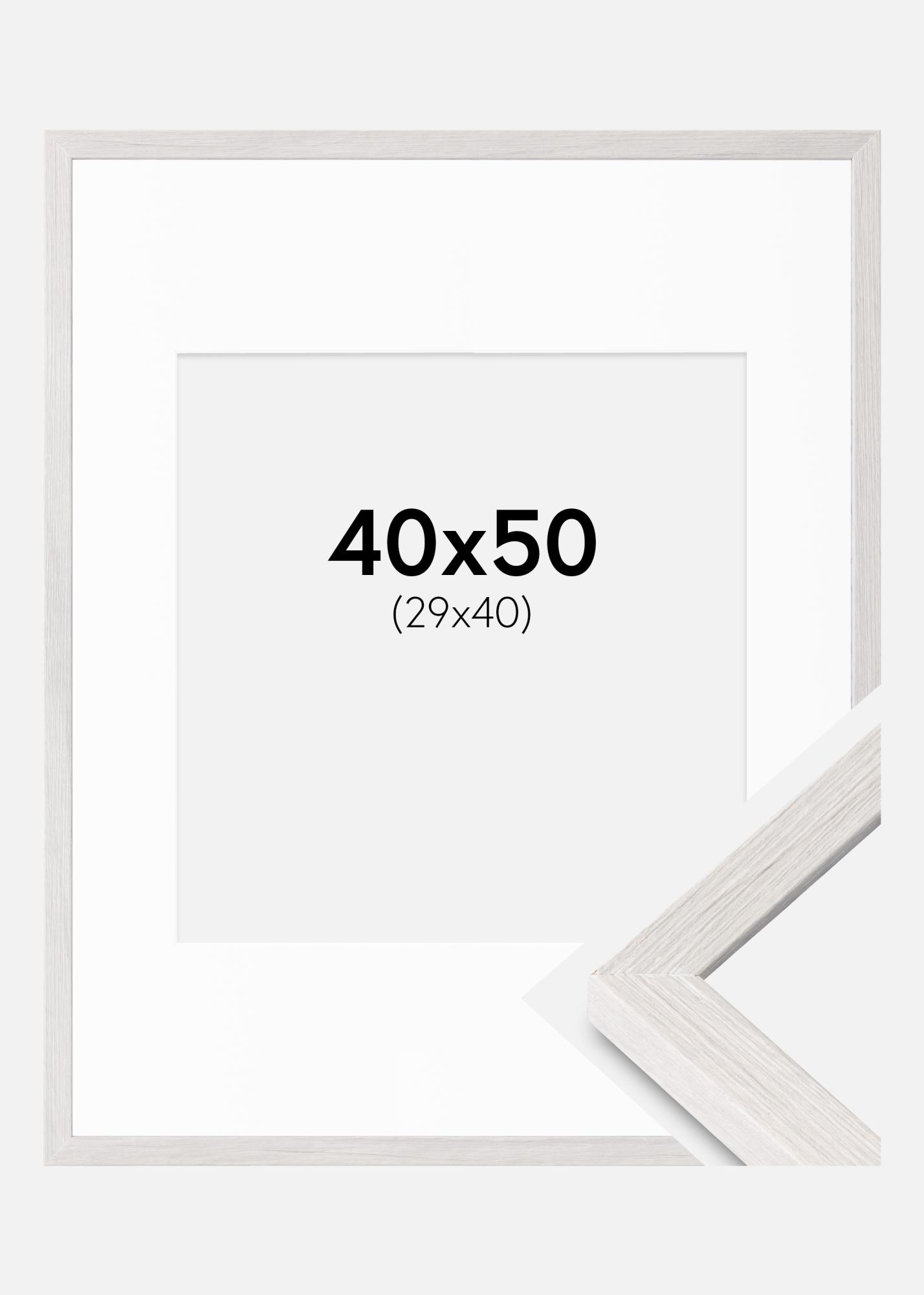 Rahmen Ares weiße Eiche 40x50 cm - Passepartout Weiß 30x41 cm