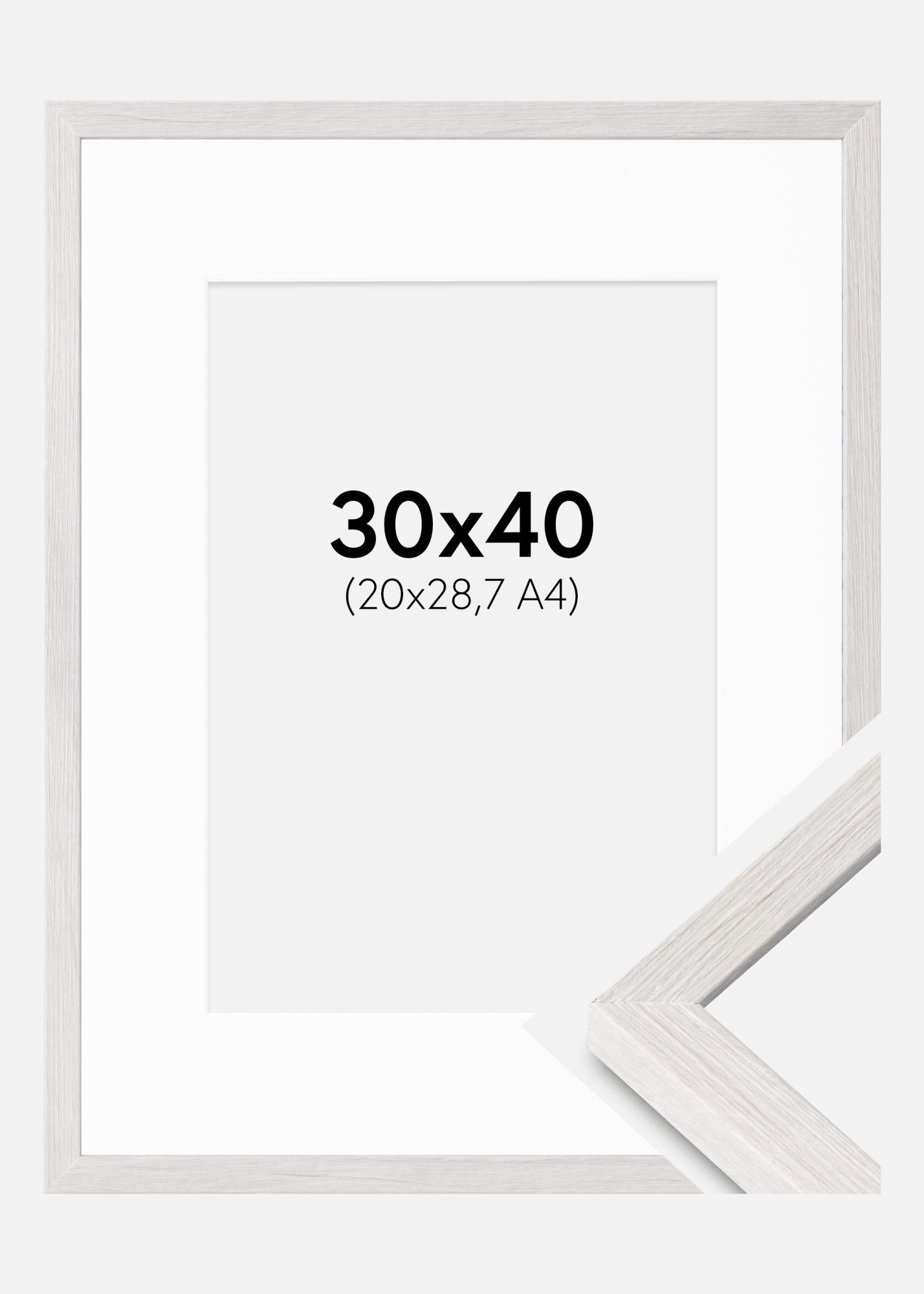 Rahmen Ares weiße Eiche 30x40 cm - Passepartout Weiß 21x29,7 cm