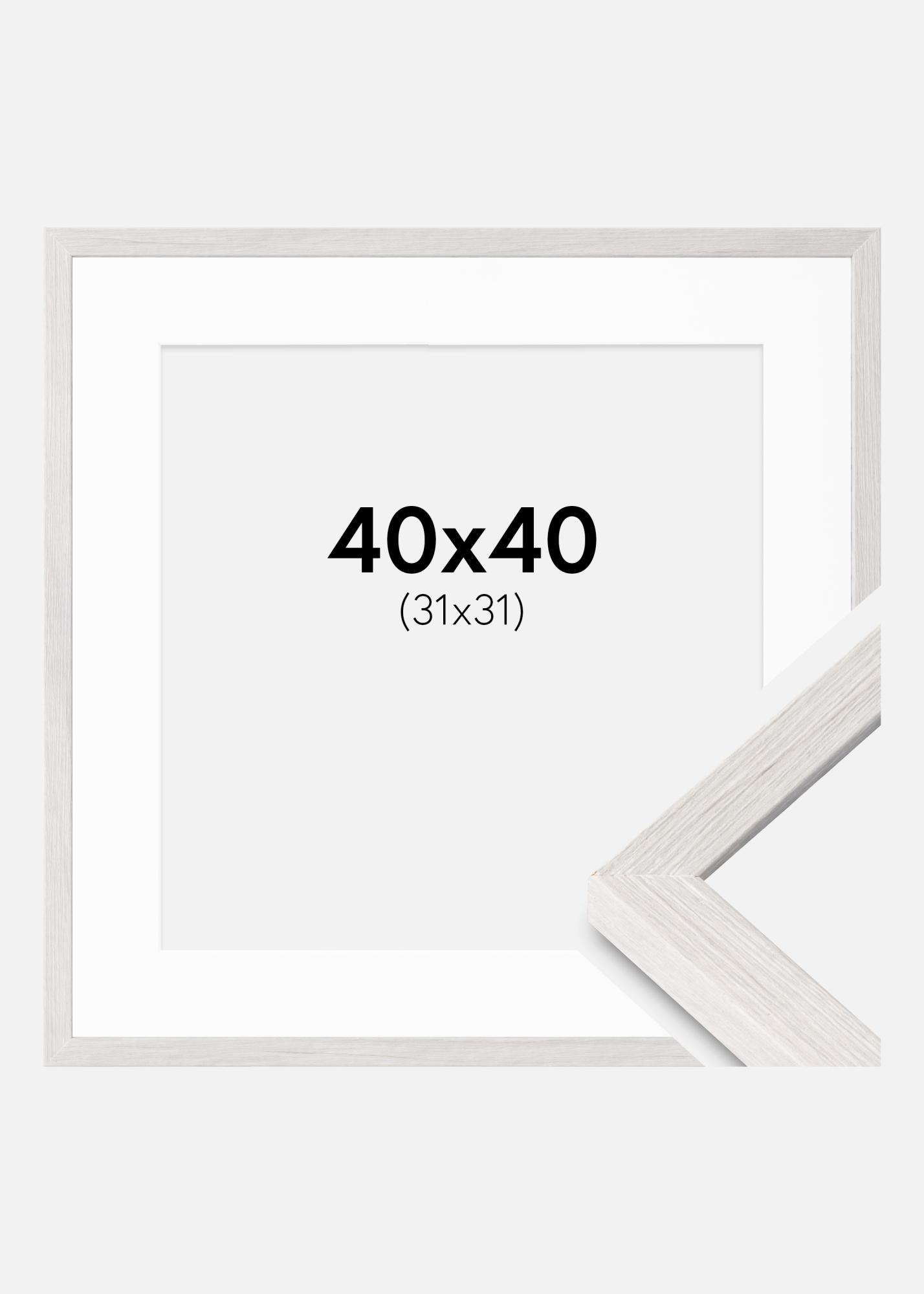 Rahmen Ares weiße Eiche 40x40 cm - Passepartout Weiß 32x32 cm
