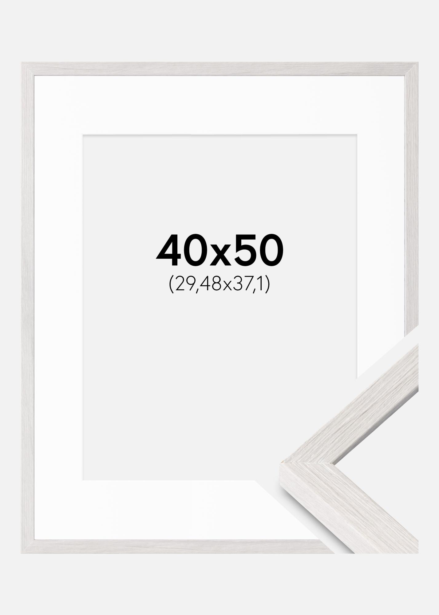 Rahmen Ares weiße Eiche 40x50 cm - Passepartout Weiß 12x15 inches