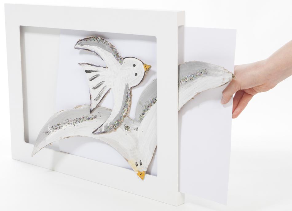 Bilderrahmen für selbstgemalte Kinderbilder sind immer ein schönes persönliches Geschenk, das in Familie und im Freundeskreis Freude bringt. Auch die kleinen Künstler werden es sicherlich toll finden, ihre eigenen Werke in angemessenen Bilderrahmen an der Wand aufhängen zu können und damit die Wände im eigenen Kinderzimmer zu schmücken. Dieser hübsche Bilderrahmen passt zu jedem Wohnstil und kann überall Einsatz finden. Da der Bilderrahmen ohne Glas auskommt, können nicht nur Bilder, sondern auch andere kleine 3D-Kunstwerke stilvoll eingerahmt werden. Warum nicht ein hübsches Bild mit kleinen Papierteilchen, Perlen oder sonstigen Bastelmaterialien verschönern und ein einzigartiges Kunstwerk schaffen? Raum für Fantasie und für schöne, persönliche Wanddekoration!