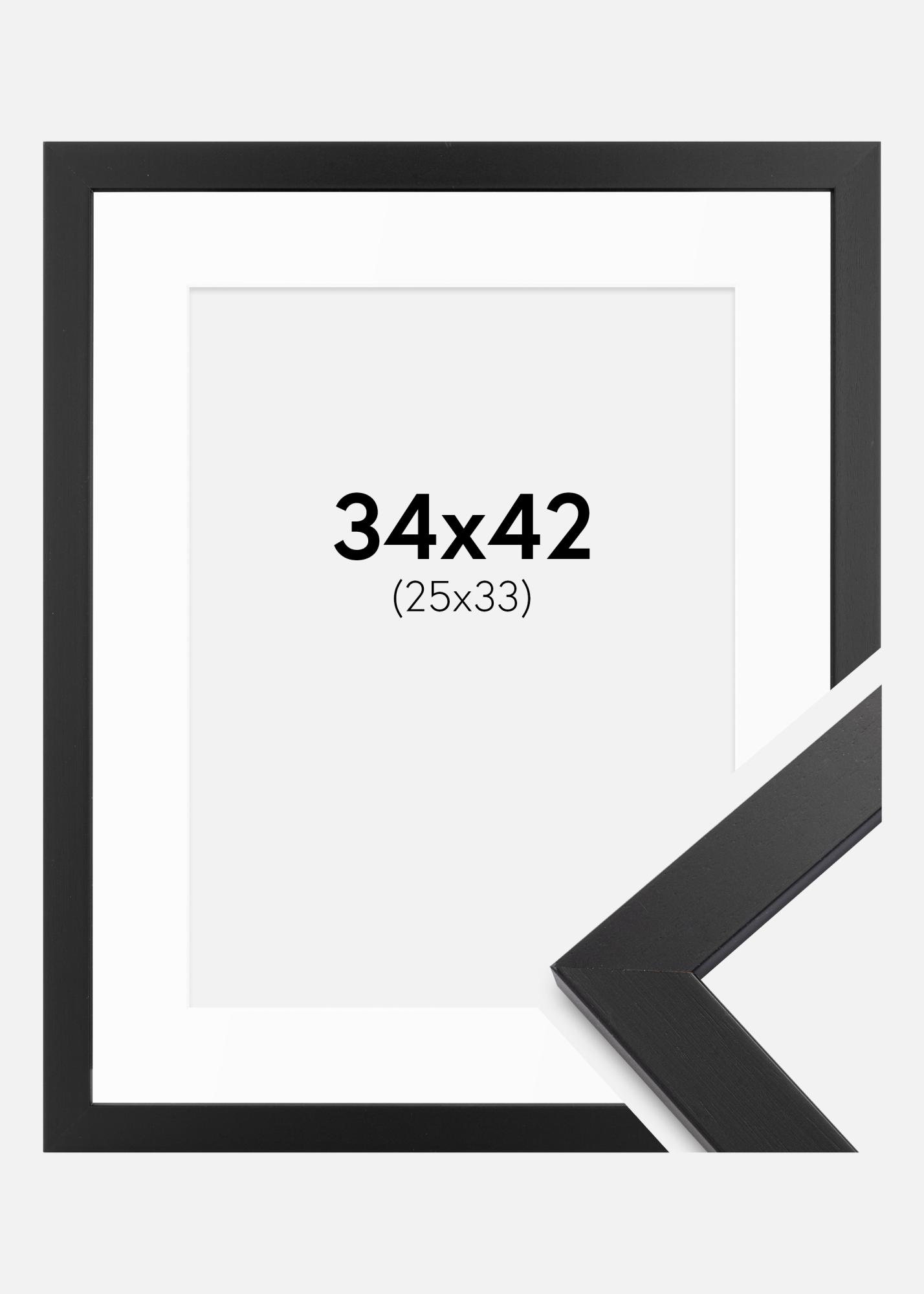 Rahmen schwarz holz 34x42 cm - Passepartout Weiß 26x34 cm