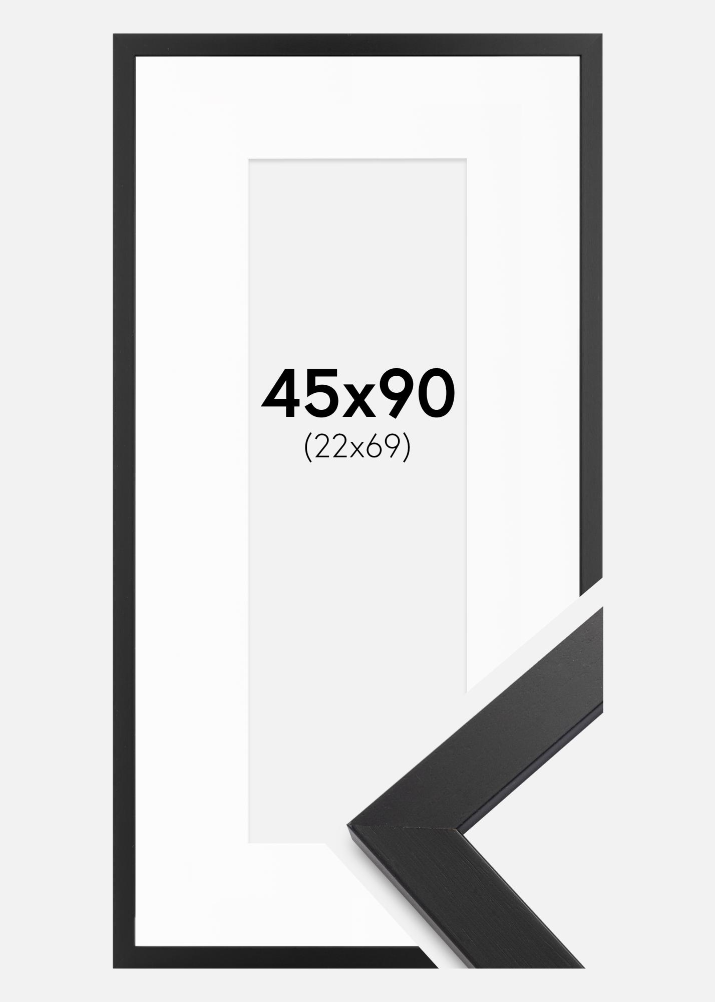 Rahmen schwarz holz 45x90 cm - Passepartout Weiß 23x70 cm