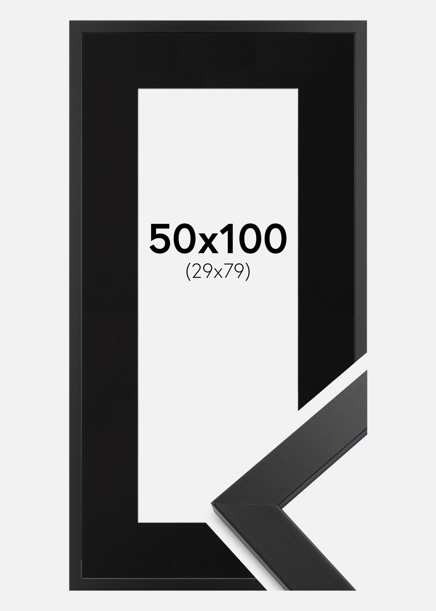 Rahmen Black Wood 50x100 cm - Passepartout Schwarz 30x80 cm