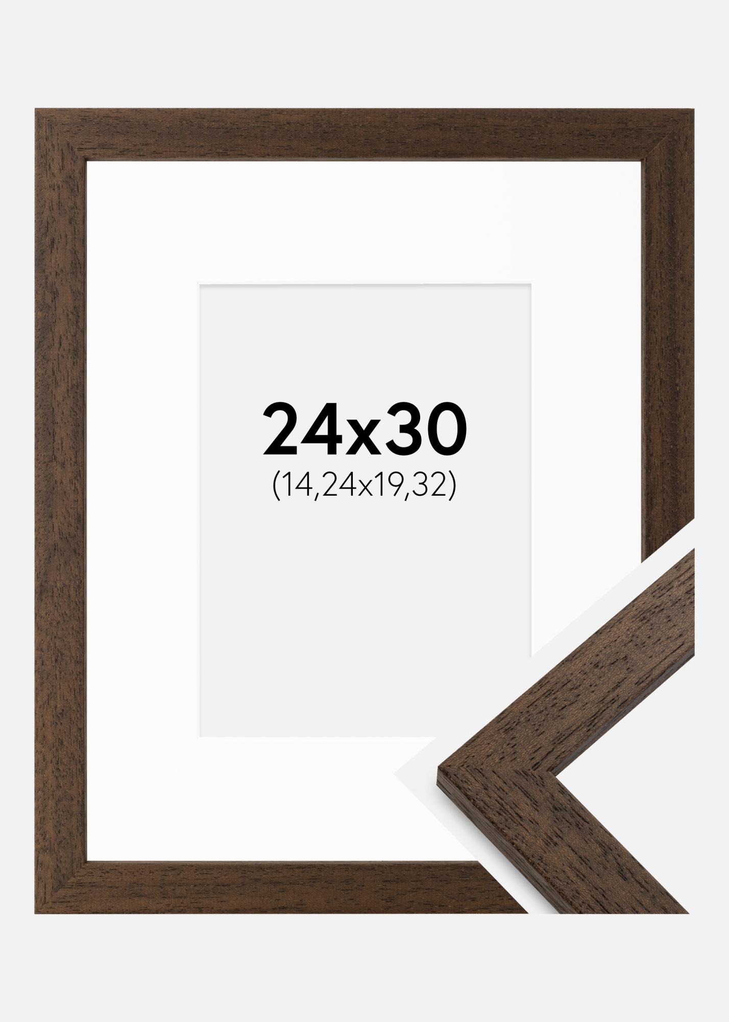 Rahmen Brown Wood 24x30 cm - Passepartout Weiß 6x8 inches