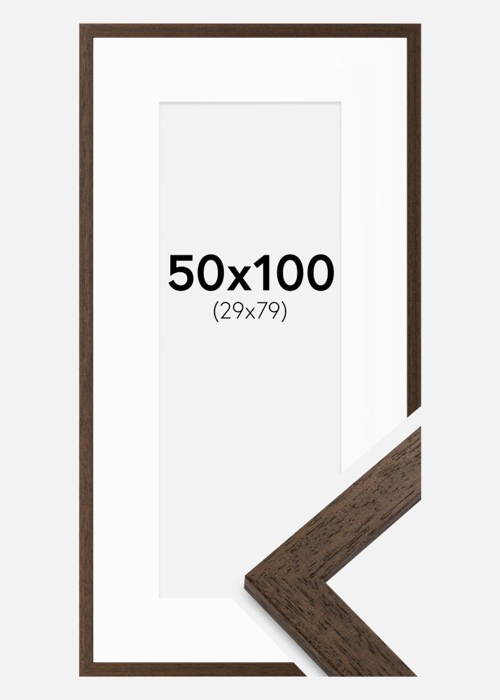 Rahmen Brown Wood 50x100 cm - Passepartout Weiß 30x80 cm