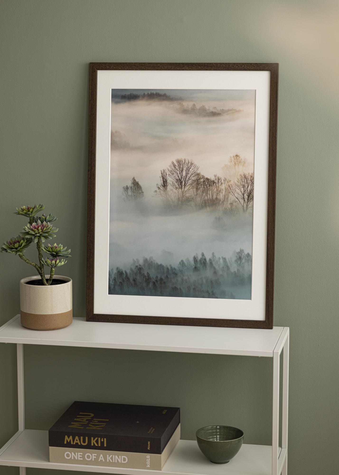 Rahmen braun holz 68x98 cm - Passepartout Weiß 56x76 cm