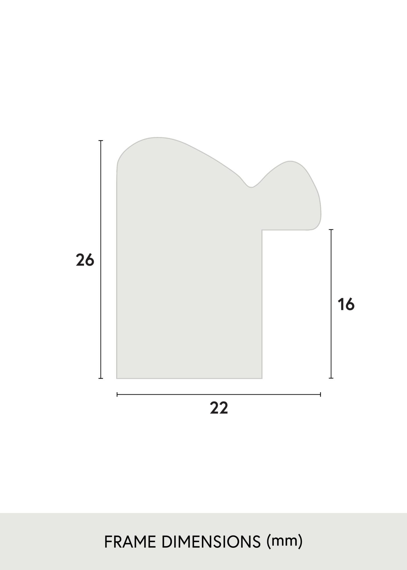 Der Rahmen hat ein schmales Profil mit einer Rahmenleiste von 23 mm Breite und einer Tiefe von 27 mm. So entsteht ein reduziertes Erscheinungsbild, bei dem dein Motiv im Mittelpunkt steht. Gefertigt aus Kompositmaterial, bietet dieser Rahmen sowohl Langlebigkeit als auch Ästhetik. Die präzisen Ecken und das gleichmäßige Finish sorgen für ein harmonisches Gesamtbild.