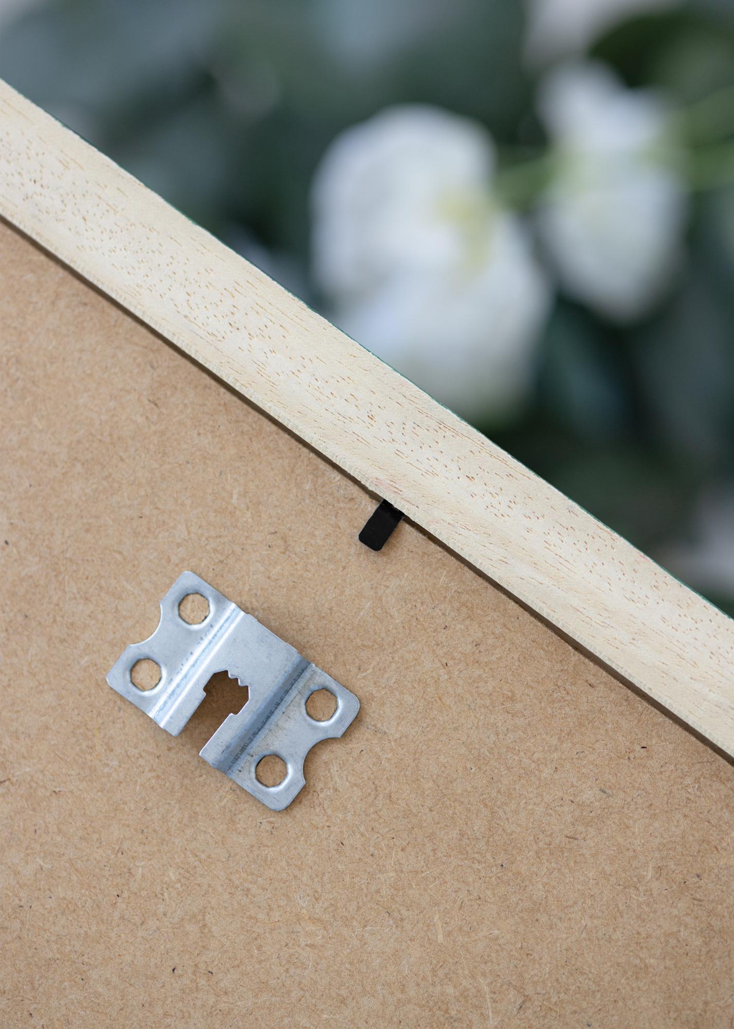 Der Rahmen besteht aus Holz und vermittelt ein harmonisches Gefühl, das sowohl in modernen als auch in skandinavischen Wohnräumen hervorragend passt. Die dezente Farbe zusammen mit der ausgeprägten Holzstruktur macht diesen Fotorahmen zu einem dekorativen Element, das sowohl Fotos als auch Poster aufwertet. Der Rahmen ist auf der Rückseite mit Metallaufhängern ausgestattet, sodass du ihn ganz einfach sowohl horizontal als auch vertikal aufhängen kannst.