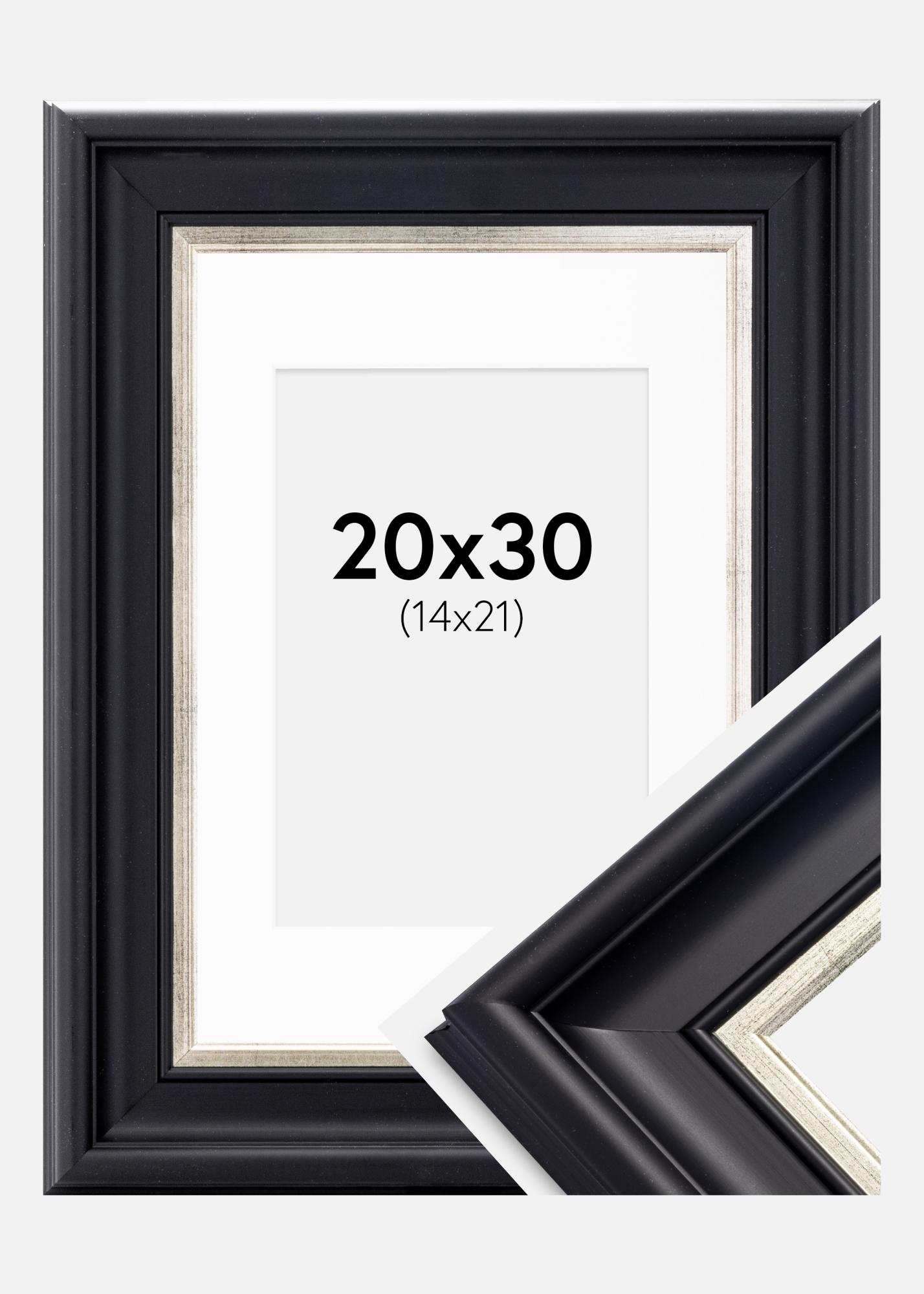Rahmen Dalarna Schwarz-Silber 20x30 cm - Passepartout Weiß 15x22 cm