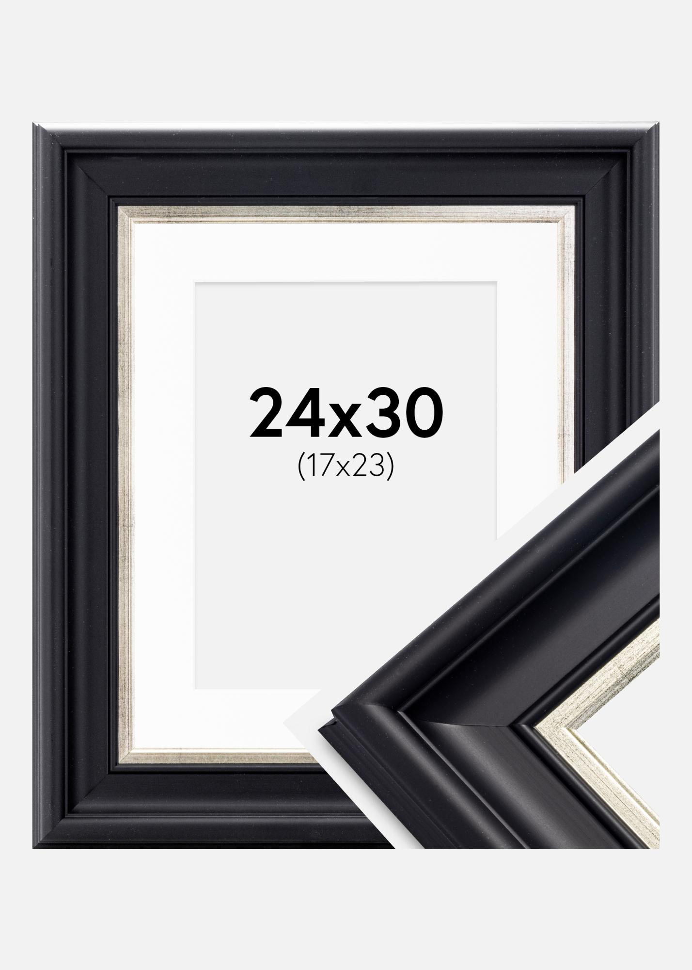 Rahmen Dalarna Schwarz-Silber 24x30 cm - Passepartout Weiß 18x24 cm