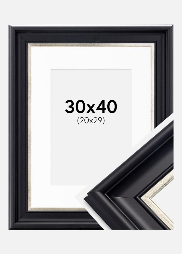 Rahmen Dalarna Schwarz-Silber 30x40 cm - Passepartout Weiß 21x30 cm