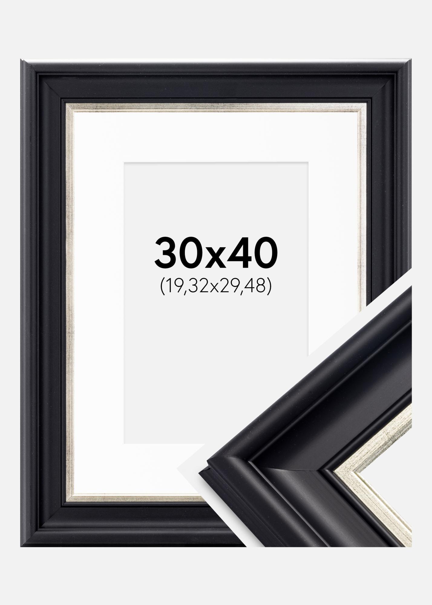Rahmen Dalarna Schwarz-Silber 30x40 cm - Passepartout Weiß 8x12 inches