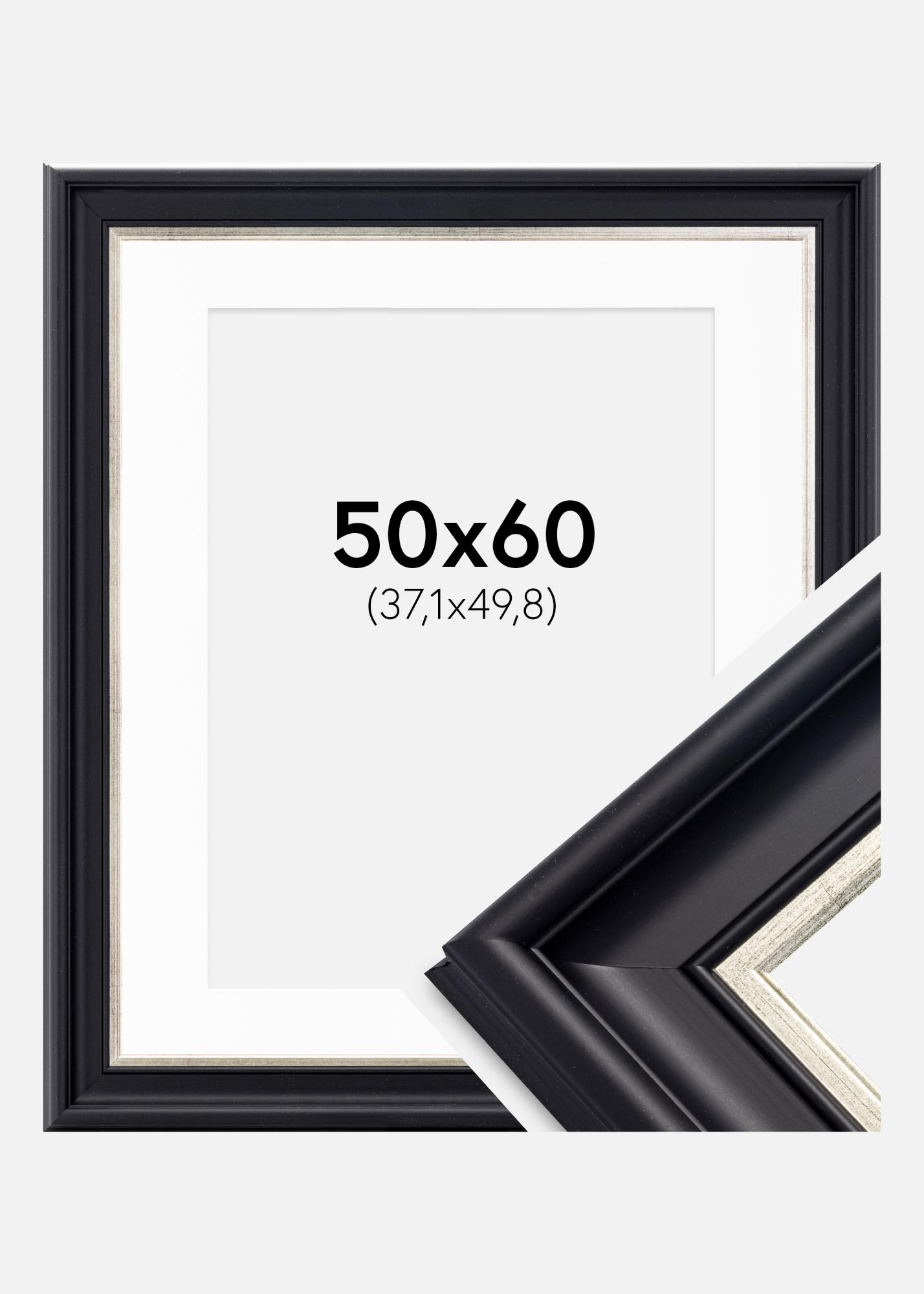 Rahmen Dalarna Schwarz-Silber 50x60 cm - Passepartout Weiß 15x20 inches