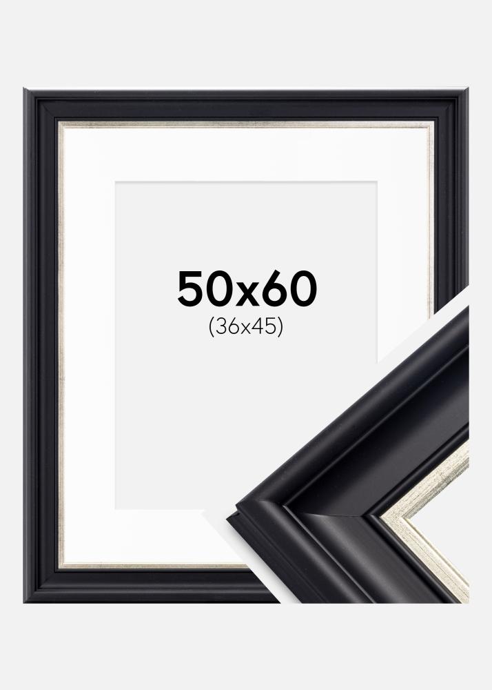 Rahmen Dalarna Schwarz-Silber 50x60 cm - Passepartout Weiß 37x46 cm