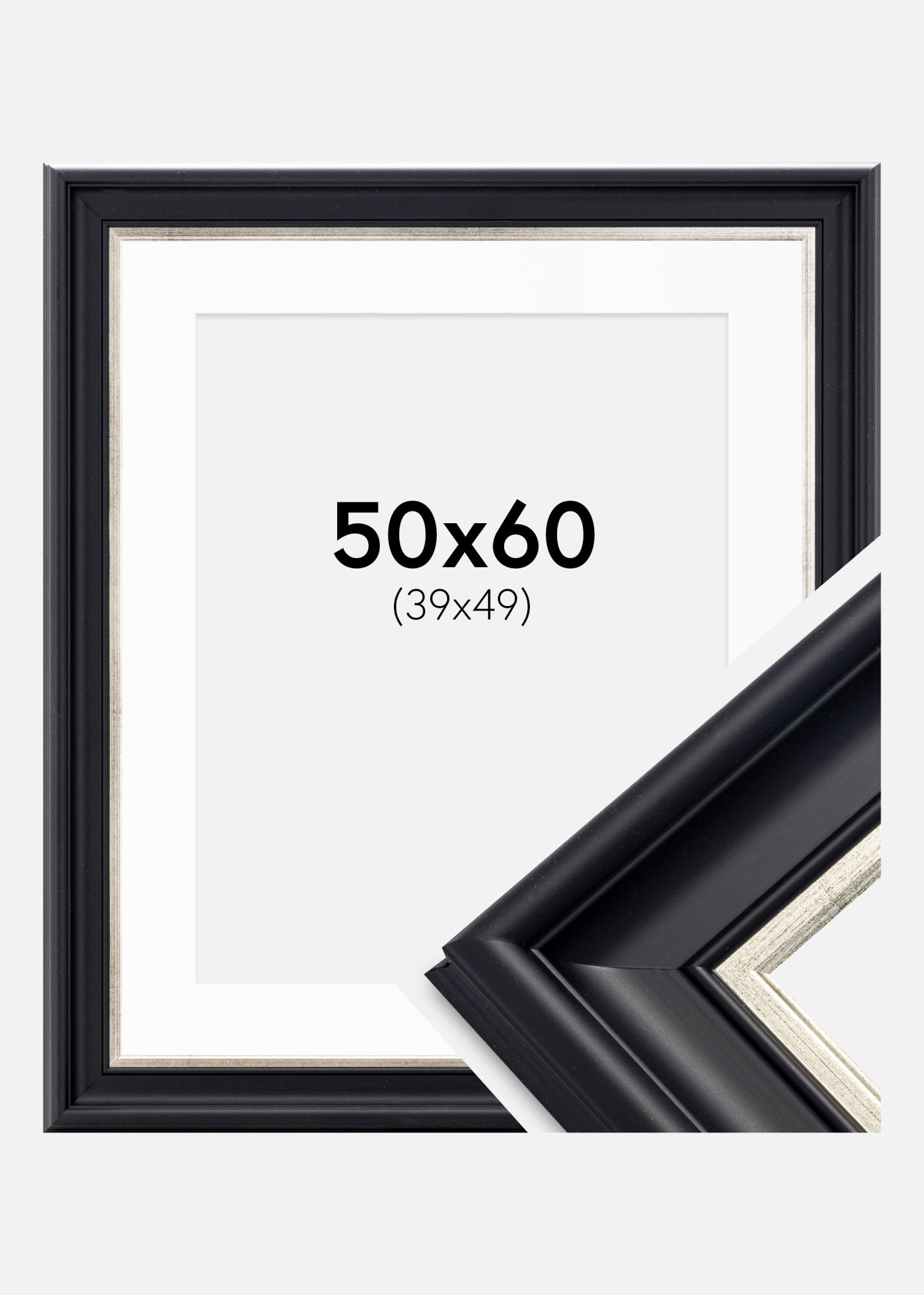 Rahmen Dalarna Schwarz-Silber 50x60 cm - Passepartout Weiß 40x50 cm