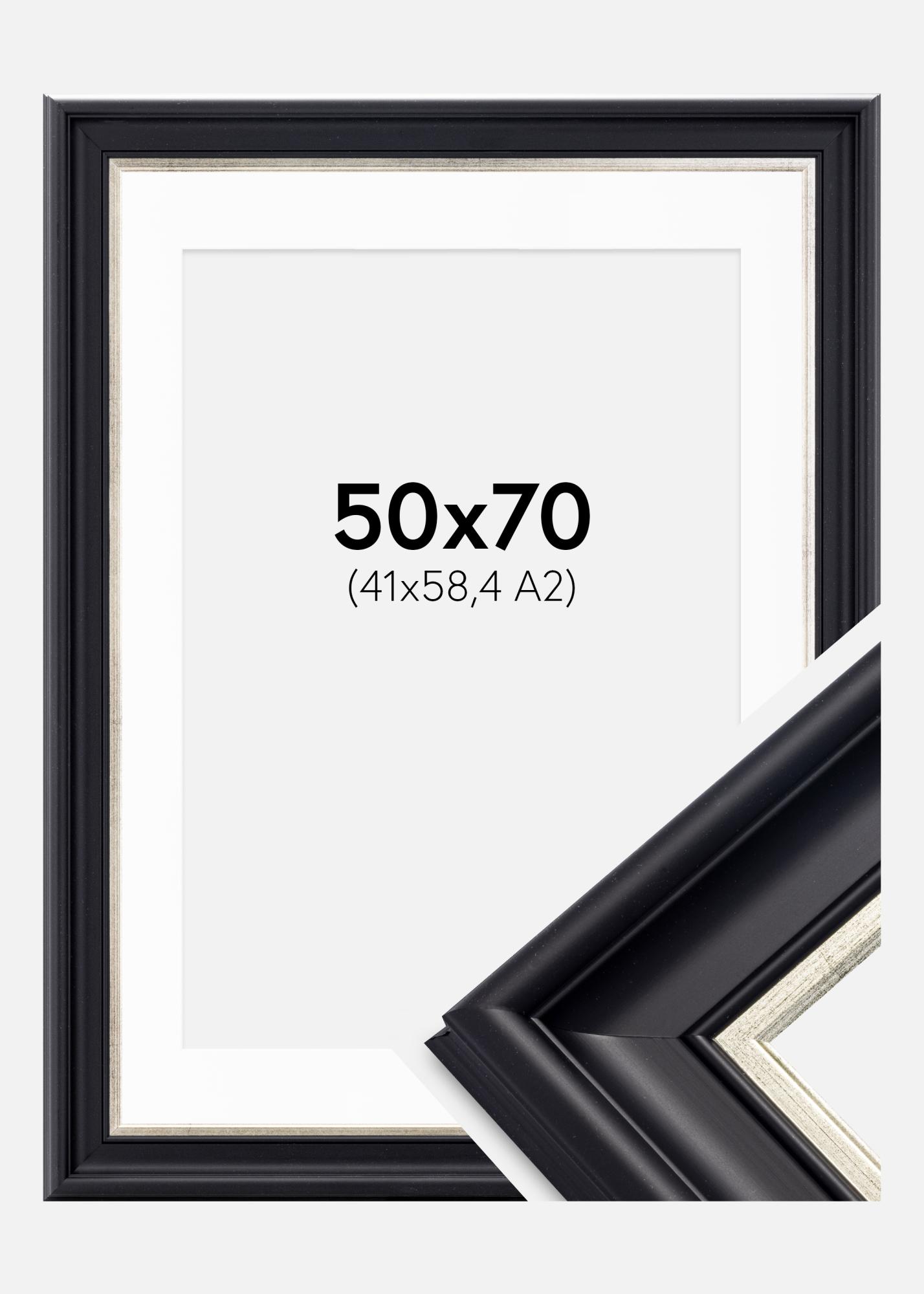 Rahmen Dalarna Schwarz-Silber 50x70 cm - Passepartout Weiß 42x59,4 cm (A2)