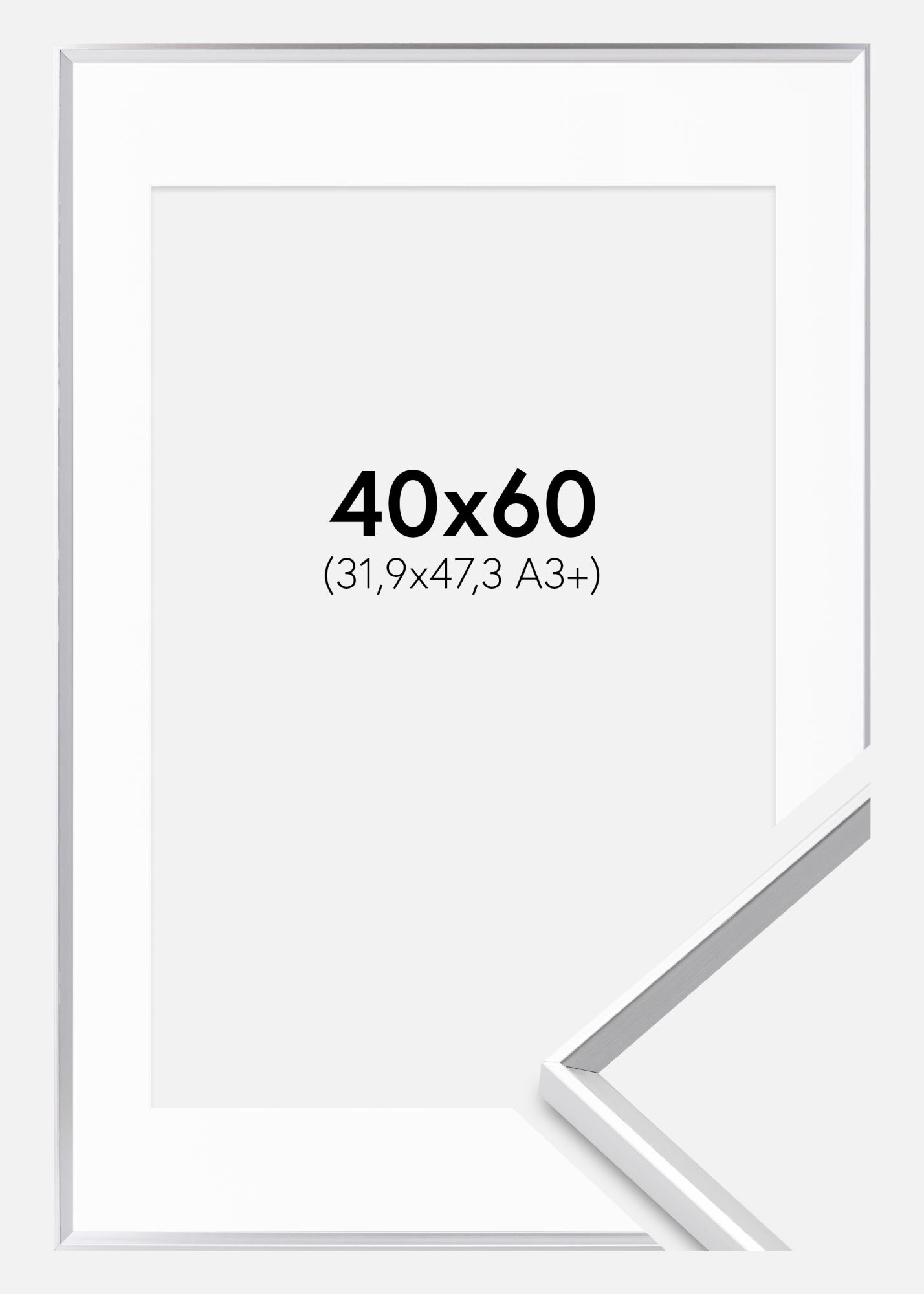 Rahmen Desire Silber 40x60 cm - Passepartout Weiß 32,9x48,3 cm (A3+)