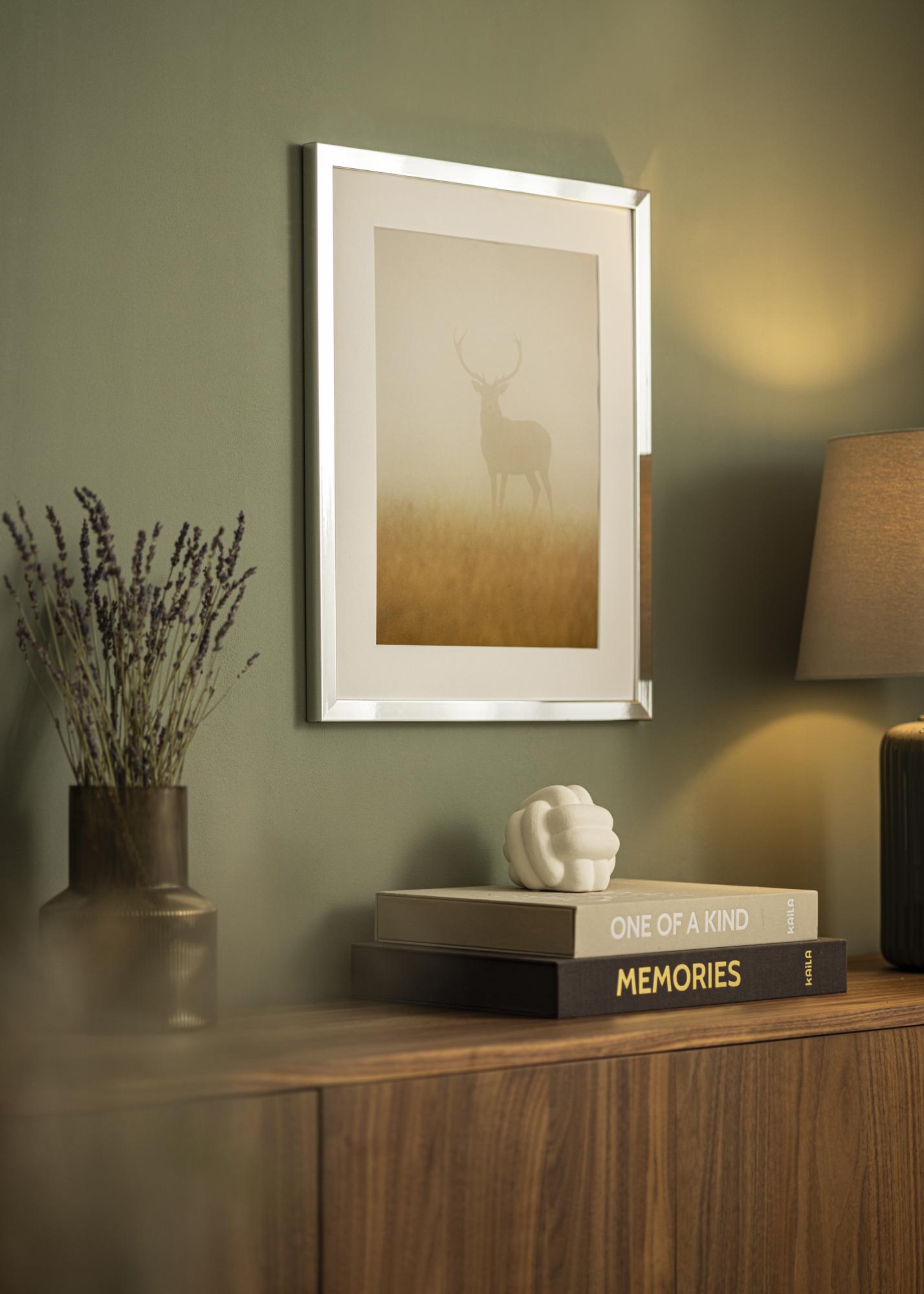 Devon Silver ist ein maßgefertigter Bilderrahmen, der von uns mit Präzision und Sorgfalt hergestellt wird. Mit seiner eleganten Silberoberfläche und dem spiegelnden Glanz reflektiert dieser Fotorahmen das Licht auf eine Weise, die ein modernes und stilvolles Gefühl in Ihr Zuhause bringt. Die glatte metallische Oberfläche fängt die Umgebung auf und verleiht je nach Lichteinfall eine dynamische Strahlkraft.