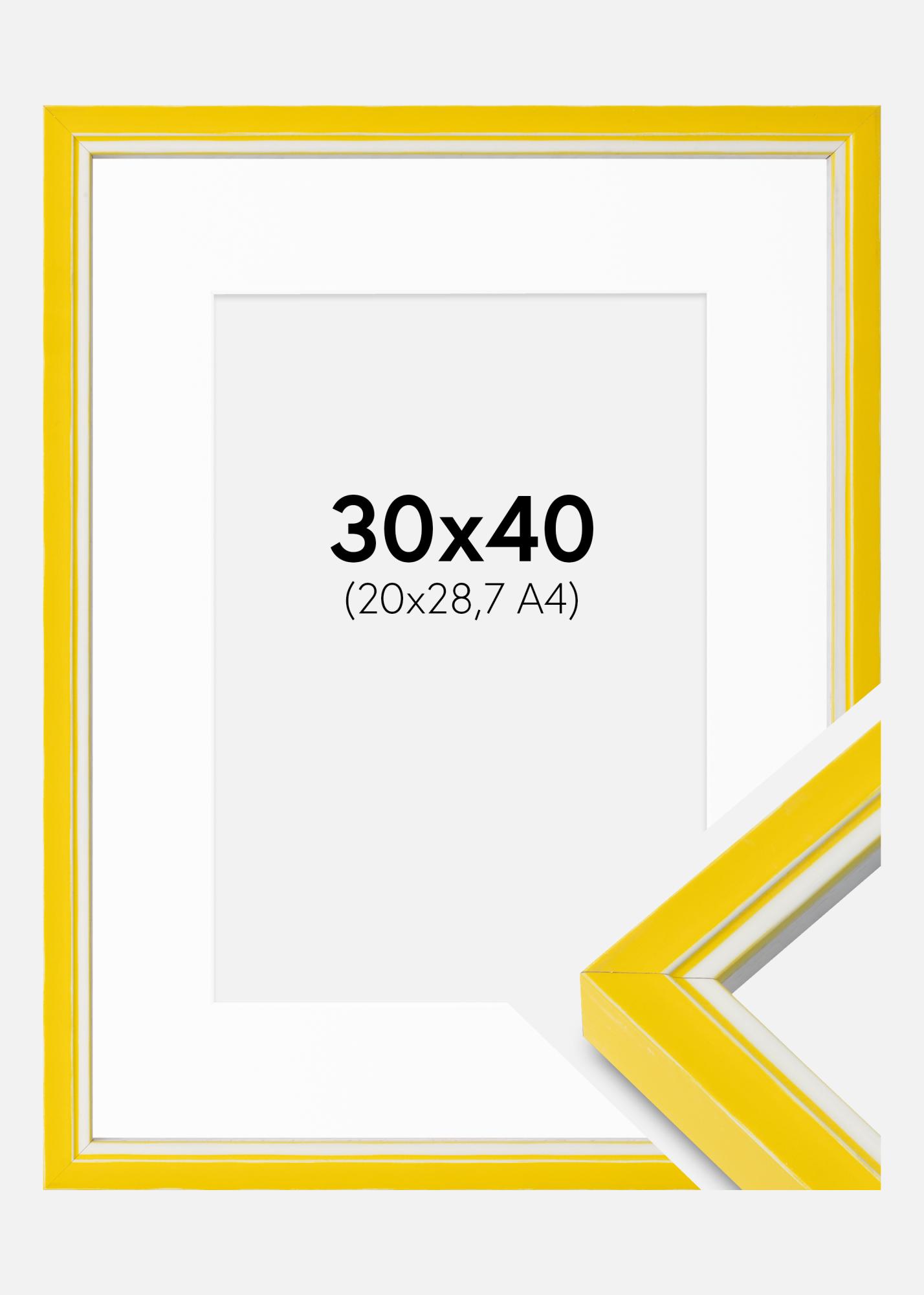 Dieser elegante Rahmen in einer lebendigen gelben Farbe ist die perfekte Wahl, um Ihre Lieblingsbilder hervorzuheben. Mit einer Breite von 20 mm und einer Tiefe von 32 mm bietet der Rahmen eine stabile und stilvolle Einrahmung, die sich in jedem Raum hervorragend macht. Der mitgelieferte weiße Passepartout rahmt Ihr Bild geschmackvoll ein und ist perfekt geeignet für Bilder in der Größe 21x29,7 cm (A4).