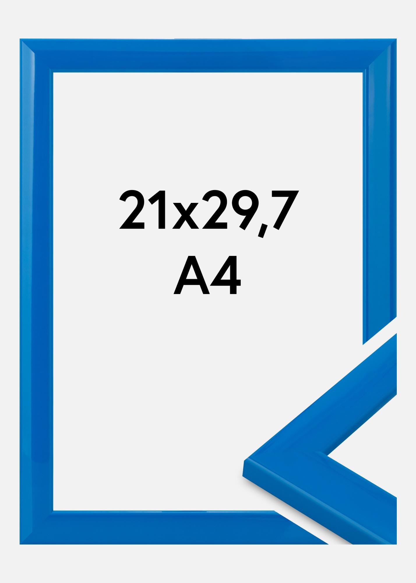 Dieser Bilderrahmen aus Holz besticht durch ein modernes, klares Design mit einer glatten, glänzenden Oberfläche in einem kräftigen Blau. Mit einer Rahmengröße von 21x29,7 cm (A4) eignet er sich perfekt, um deine Lieblingsmotive stilvoll in Szene zu setzen. Das schmale Profil sorgt für einen minimalistischen Look, sodass dein Motiv im Mittelpunkt steht. Die präzisen Ecken und das glänzende Finish verleihen dem Rahmen eine elegante Ausstrahlung, die wunderbar zu modernen, skandinavischen oder farbenfrohen Einrichtungsstilen passt.