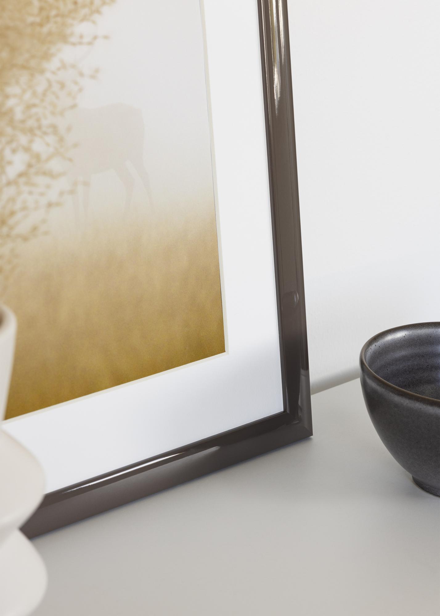 Dieser Fotorahmen in der Größe 21x29,7 cm ist perfekt, um deine Lieblingsmotive hervorzuheben. Mit einem modernen und schlichten Design sowie einer glatten, glänzenden Oberfläche in Dunkel grau wird er zu einer eleganten Ergänzung für dein Zuhause. Das schmale Profil und die klaren Ecken verleihen ihm einen minimalistischen Ausdruck, der das Motiv in den Mittelpunkt stellt.