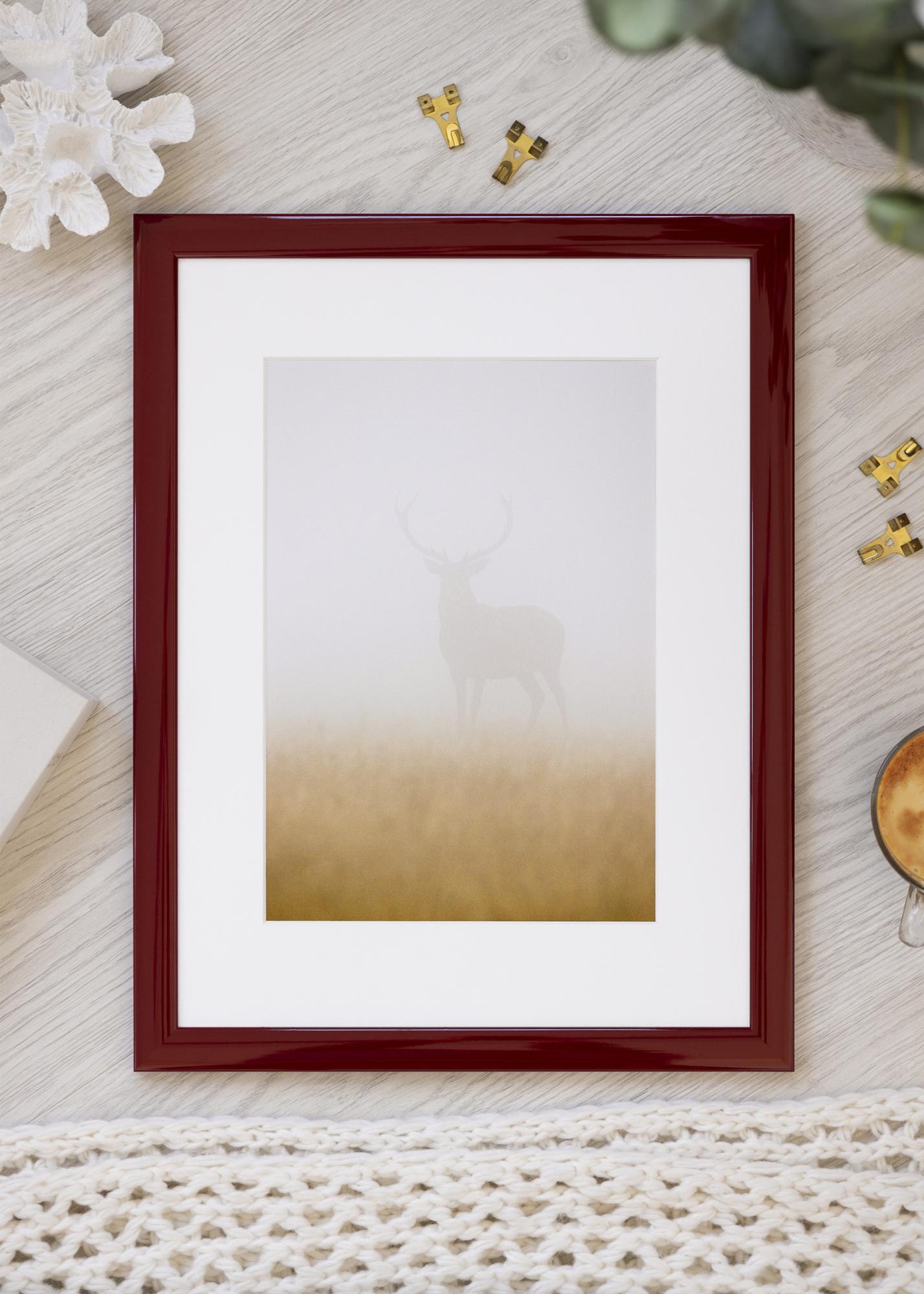 Dieser Fotorahmen in der Größe 21x29,7 cm ist perfekt, um deine Lieblingsmotive hervorzuheben. Mit einem tiefen, weinroten Ton und einer glänzenden Oberfläche verleiht er einen modernen und stilvollen Eindruck. Der Rahmen hat ein schmales Profil mit einer 23 mm breiten Rahmenleiste und einer Tiefe von 13 mm – so entsteht ein minimalistischer Look, bei dem dein Motiv wirklich im Mittelpunkt steht.