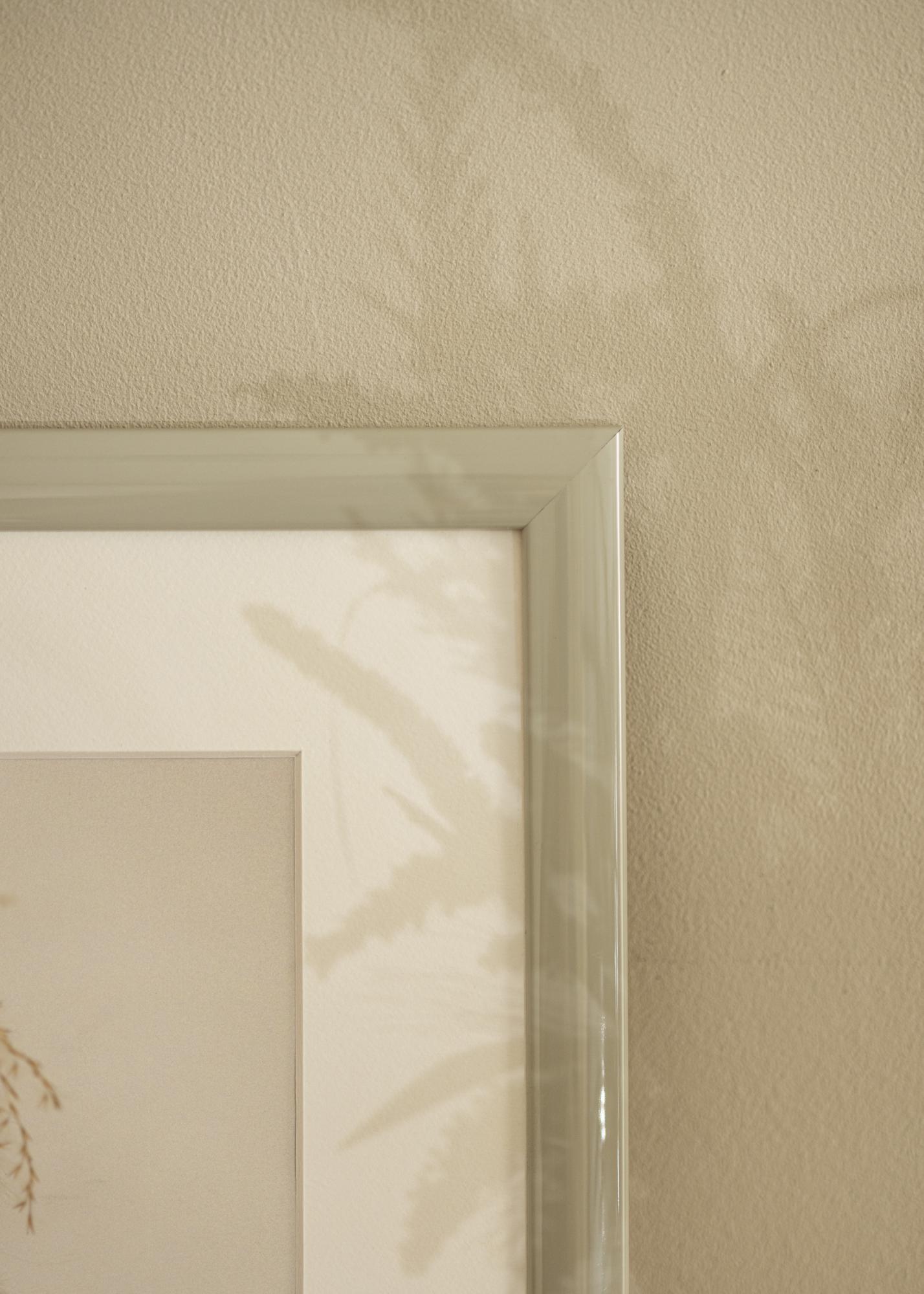 Der Rahmen Dorset Hellgrau ist ein maßgefertigter Bilderrahmen, der in unserer eigenen Rahmenwerkstatt gefertigt wird, was Ihnen die Möglichkeit gibt, einen Fotorahmen zu erhalten, der perfekt zu Ihren spezifischen Bedürfnissen passt. Mit seiner hellgrauen Farbe und hochglänzenden Oberfläche bietet dieser Rahmen eine elegante und reflektierende Fläche, die Ihre Bilder oder Kunstwerke wirklich hervorheben kann. Der glatte Lack betont die subtilen Nuancen der Farbe und schafft einen lebendigen Ausdruck, der sich je nach Lichteinfall ändert.