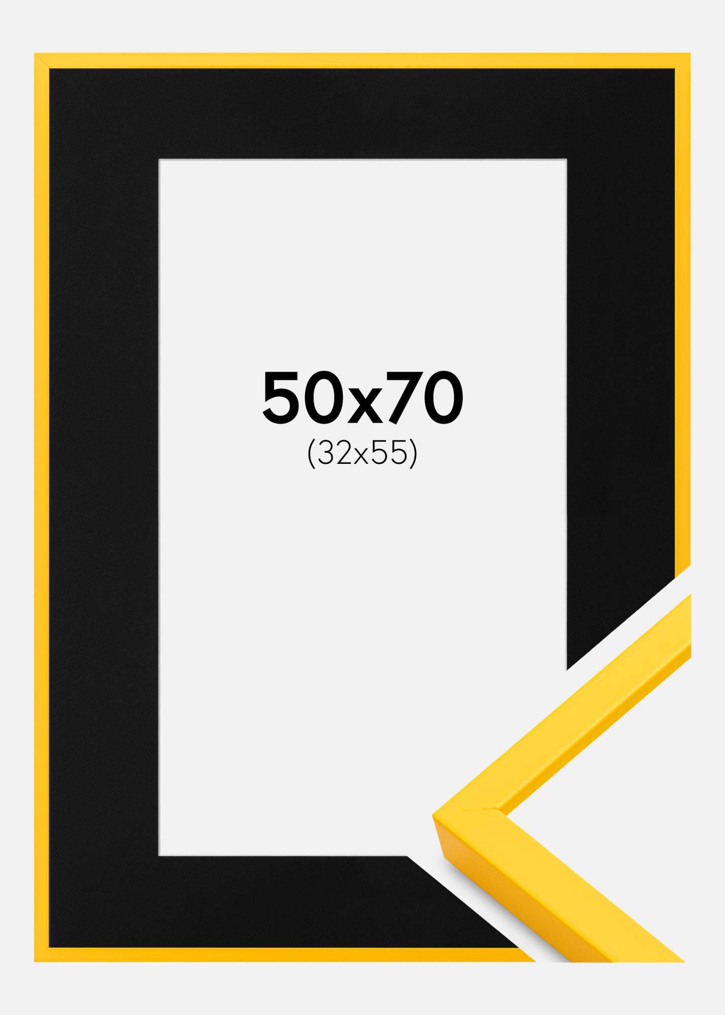 Rahmen E-Line Gelb 50x70 cm - Passepartout Schwarz 33x56 cm