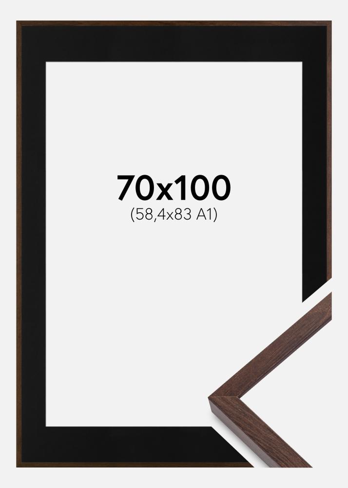 Rahmen E-Line Walnuss 70x100 cm - Passepartout Schwarz 59,4x84 cm