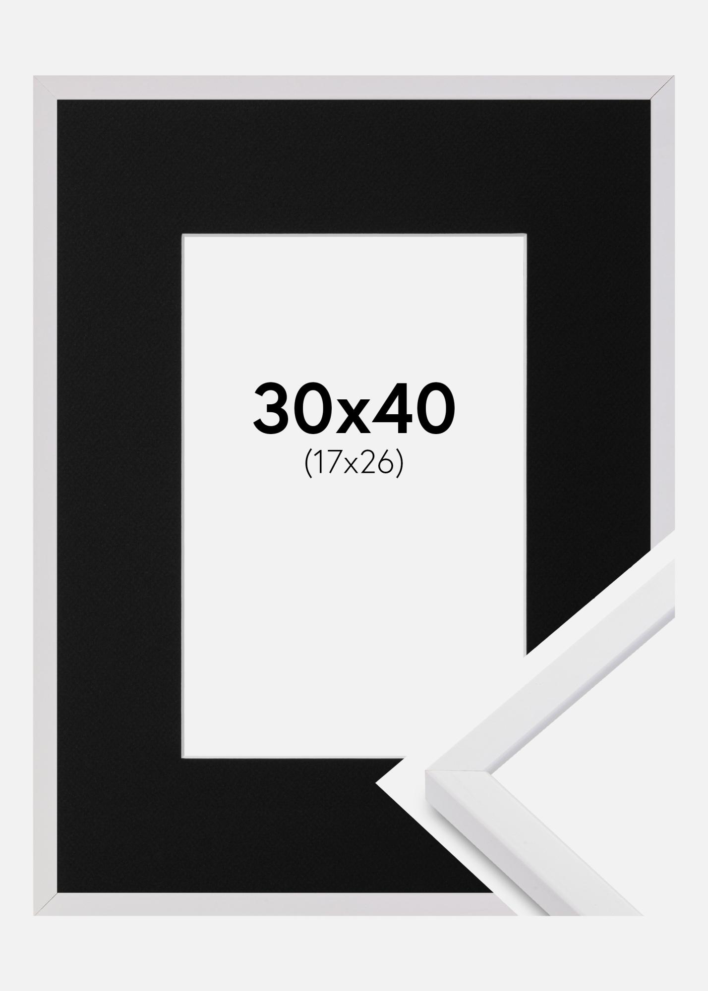 Rahmen E-Line Weiß 30x40 cm - Passepartout Schwarz 18x27 cm