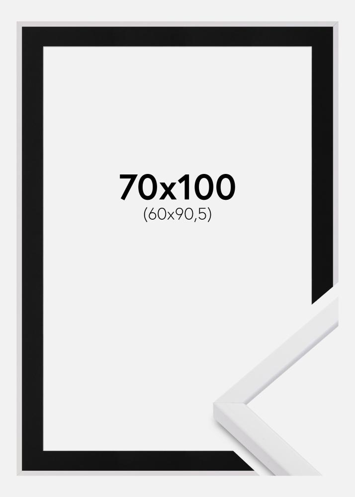 Rahmen E-Line Weiß 70x100 cm - Passepartout Schwarz 61x91,5 cm