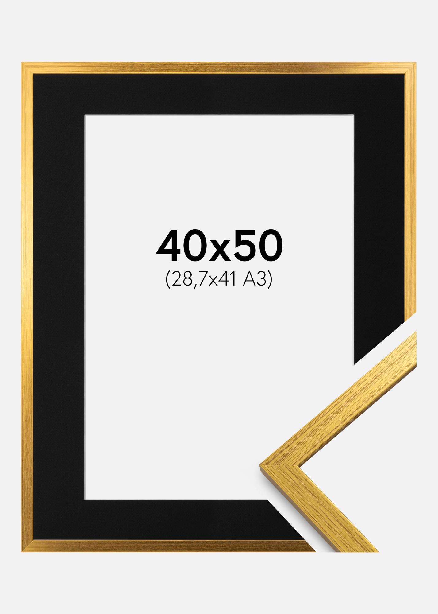 Rahmen Edsbyn Gold 40x50 cm - Passepartout Schwarz 29,7x42 cm (A3)