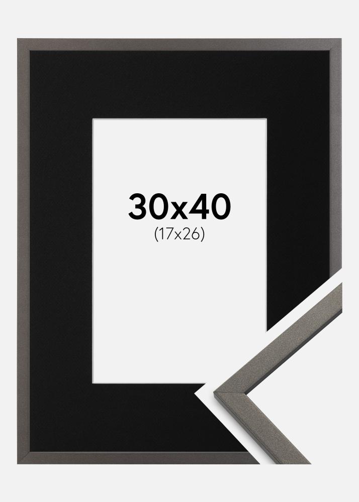 Rahmen Edsbyn Graphitgrau 30x40 cm - Passepartout Schwarz 18x27 cm