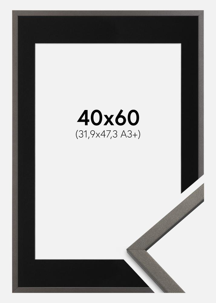 Rahmen Edsbyn Graphitgrau 40x60 cm - Passepartout Schwarz 32,9x48,3 cm (A3+)