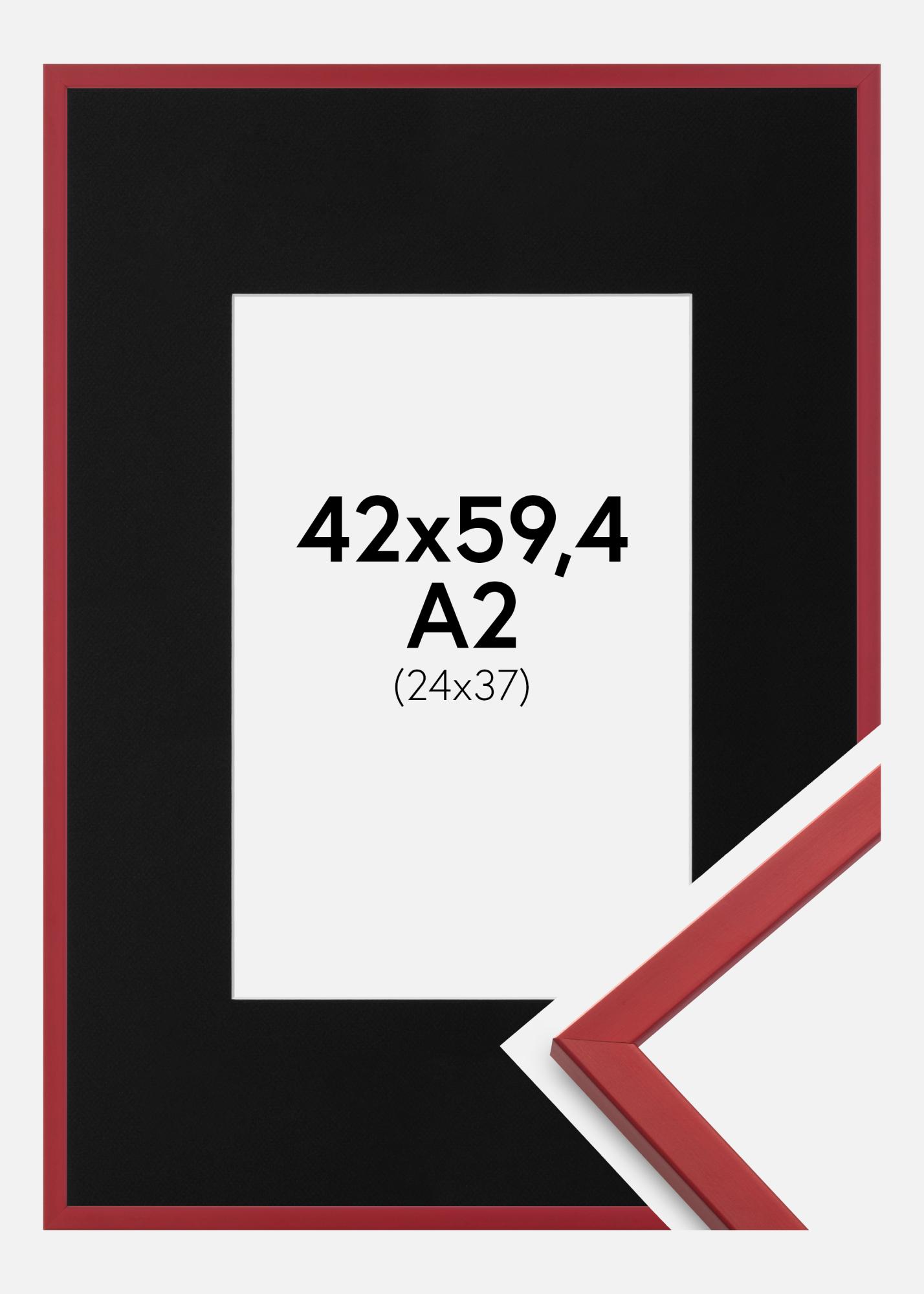 Rahmen Edsbyn Rot 42x59,4 cm (A2) - Passepartout Schwarz 25x38 cm