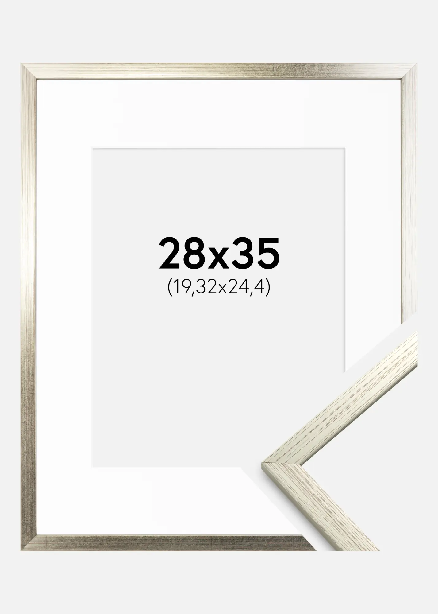 Rahmen Edsbyn Silber 28x35 cm - Passepartout Weiß 8x10 inches